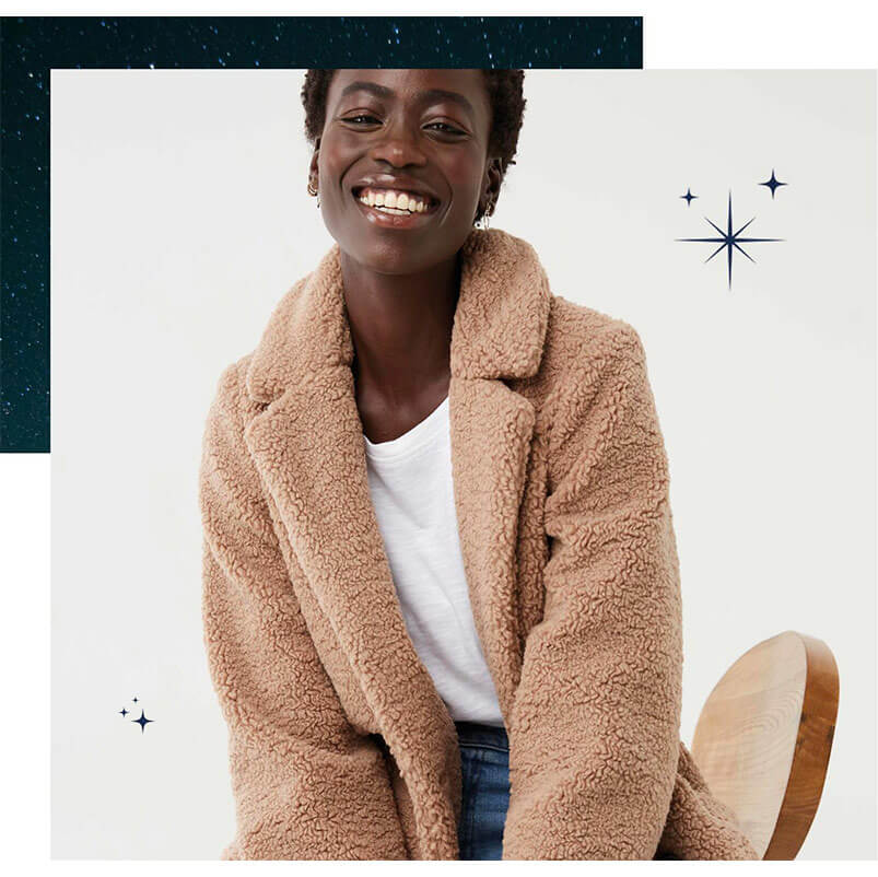 Don't be afraid to show your soft side with our super stylish double-breasted Tanya Teddy Coat. Not only is it oh-so-warm but it's complete with an oversized collar, deep pockets, and a warm lining for extra cosiness. Make this teddy coat your go-to when the temperature drops.