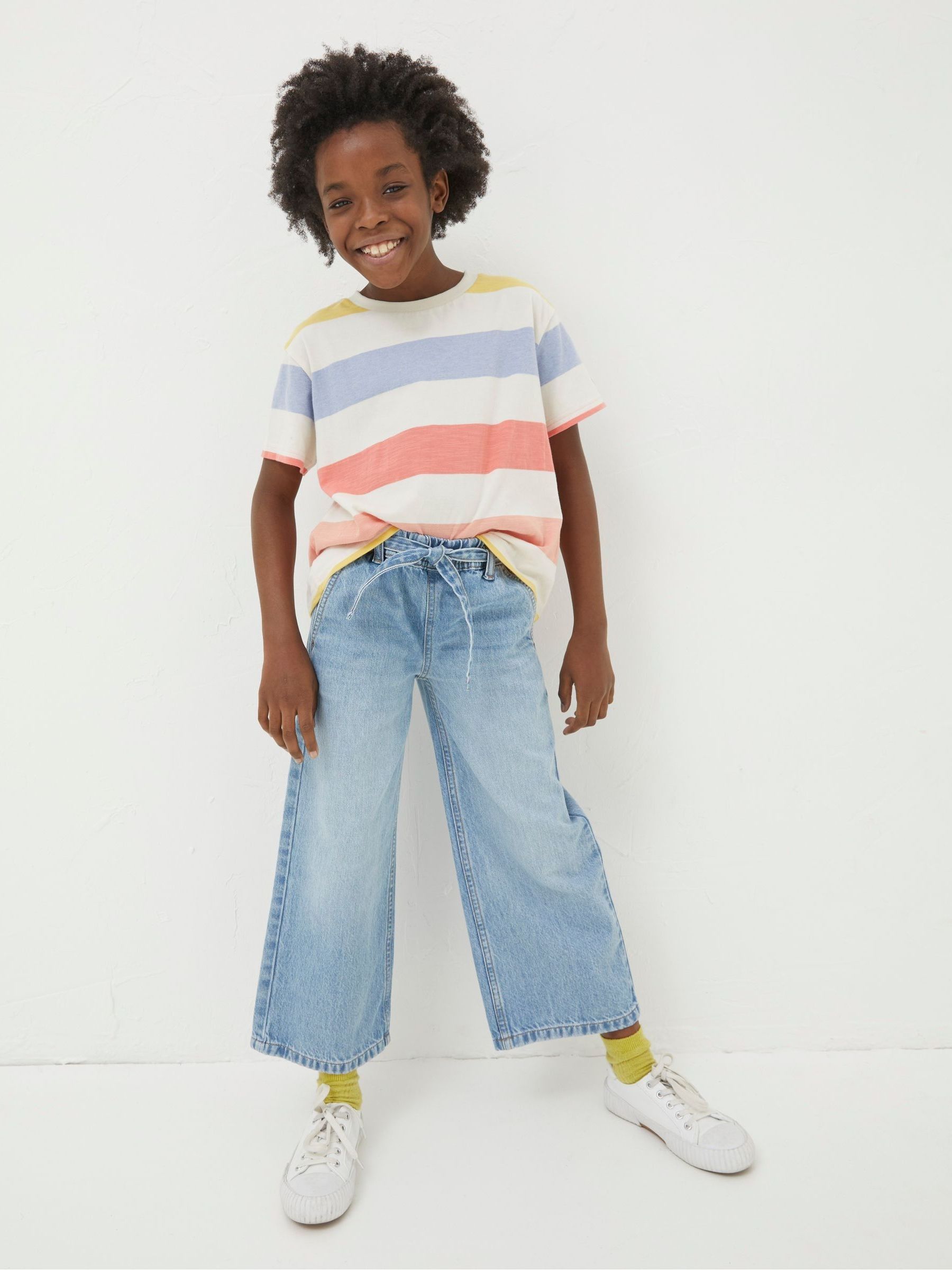 Get your little one dressed up for the season ahead with our wide-leg jeans. Made from soft, lightweight cotton denim, these are perfect for a daily style. We've added an elasticated waistband with an extra tie waist for an easy and comfortable fit.