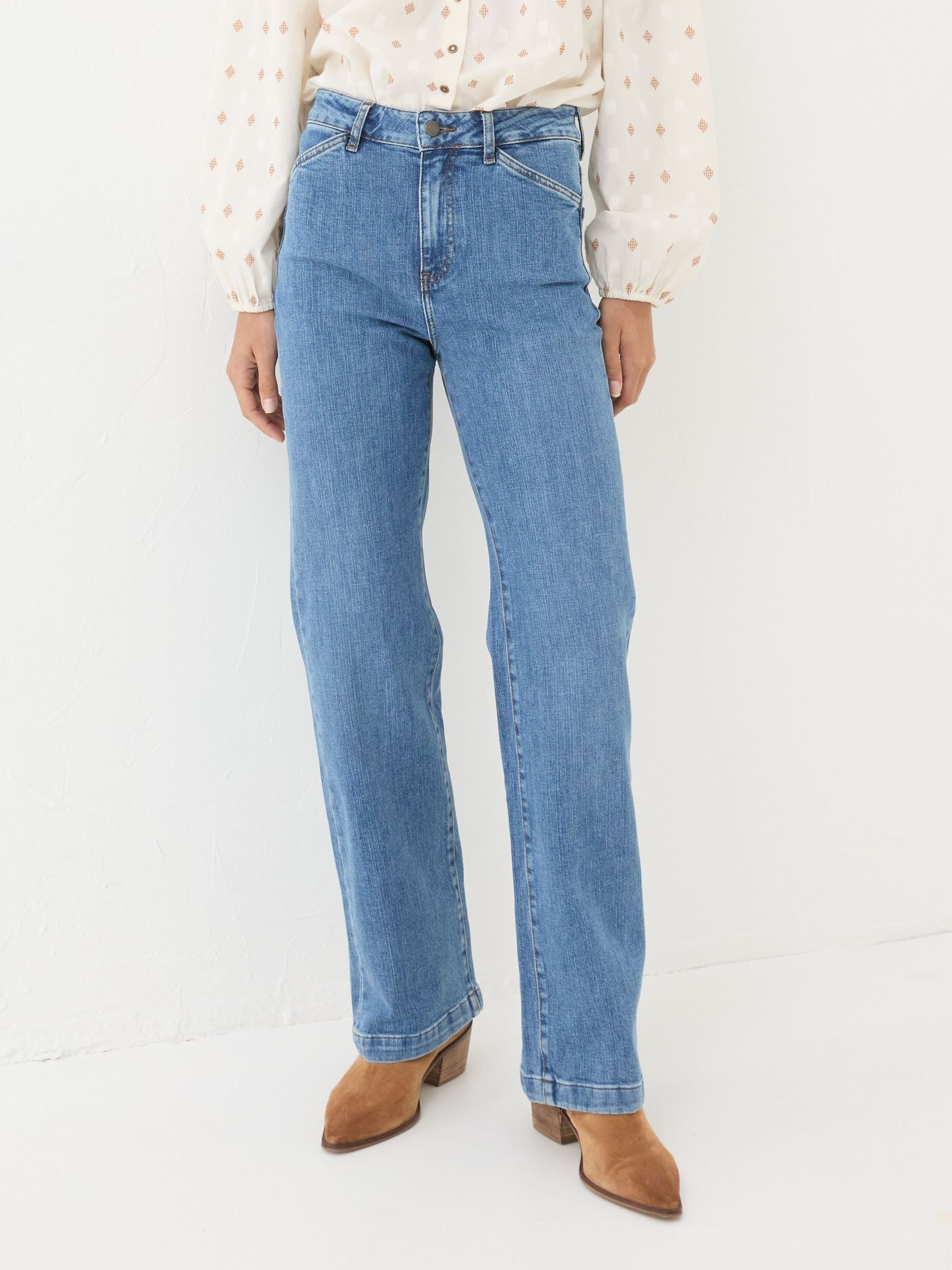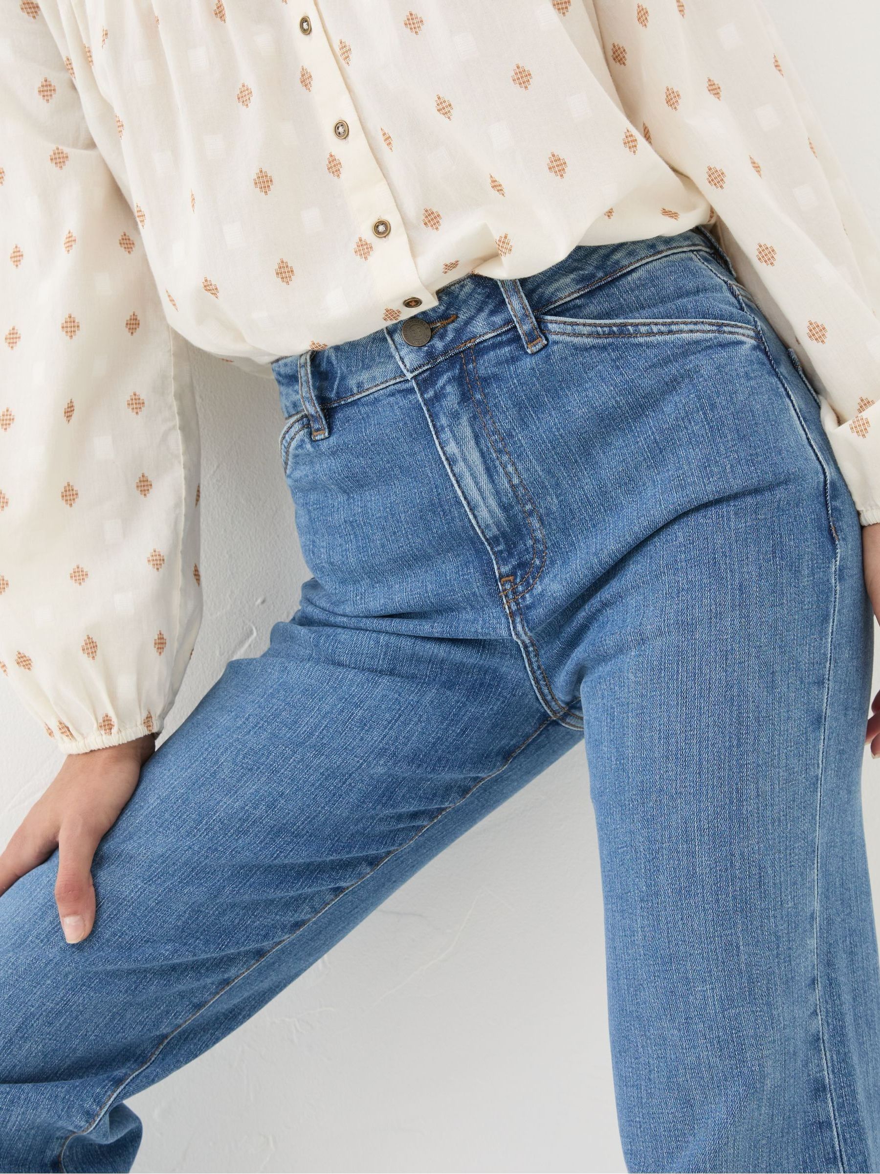 Our Elise wide leg jeans are a classic modern style. Offering a super comfortable fit, they re midrise and feature a wide leg that flares out slightly from the knee to create a long, lean silhouette. They have a nice full length which makes them great for styling with flatforms and trainers. Made with durable cotton and a touch of stretch Midrise fit Relaxed and comfortable Regular inside leg length 30' / 76cm