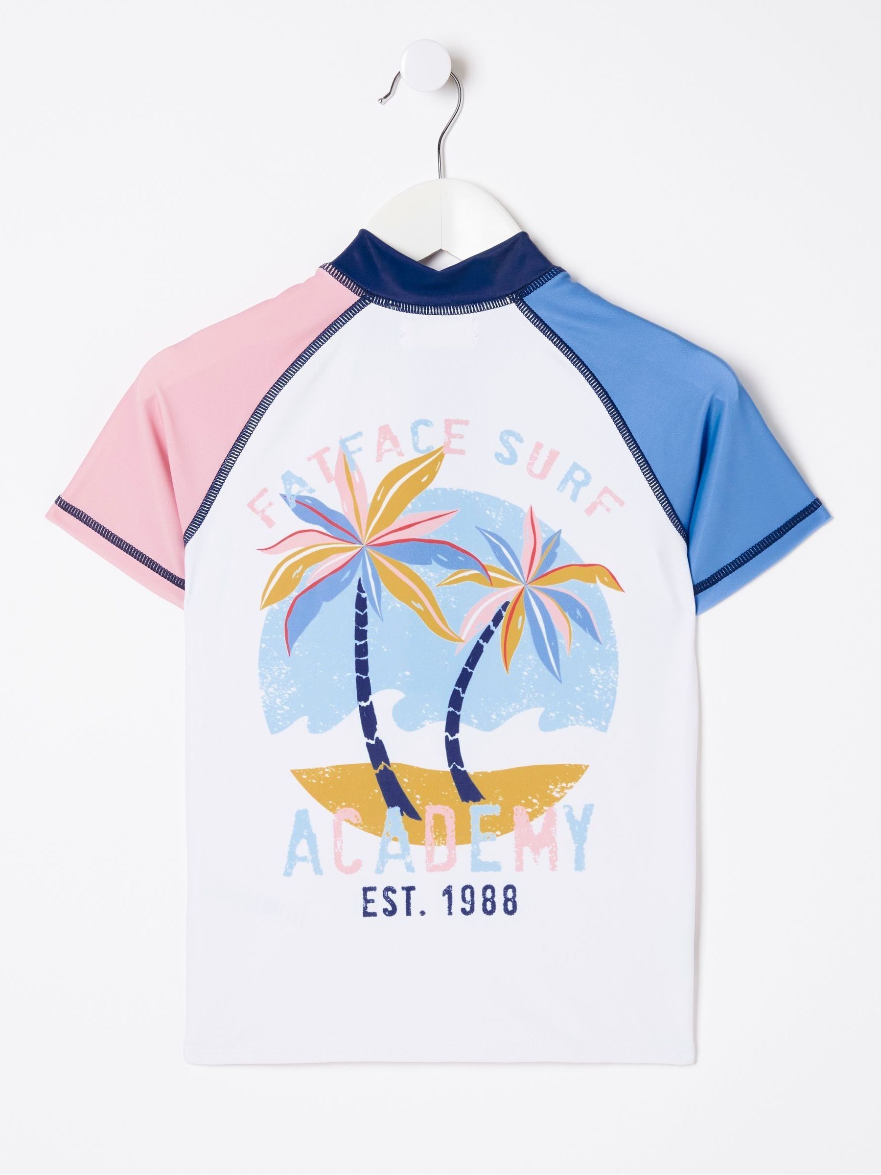 Our colourblock vest couldn't be cuter. Boasting a sun-swept colour palette and a cool graphic for an added touch of style, they'll be swimming non-stop in this adorable style. Crafted from recycled polyester with a mix of elastane, this little rash vest is better for the environment and super comfortable too. Complete with a front zip to make dressing easier, just pair this with swim shorts and release them to the water! Adorable colourblock palette Front zip Crafted from 84% recycled polyester