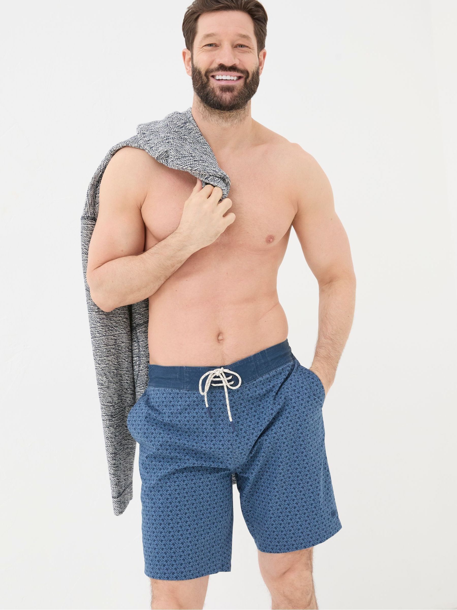 A true essential for your holidays, our Camber swim shorts are crafted from a cotton and recycled polyester blend for a lightweight feel. They feature an elasticated waist with a drawstring tie for the perfect fit, plus we've added convenient pockets. Pair with some flip-flops and sunglasses while relaxing on the beach or by the pool. This special pair come with a fish print.