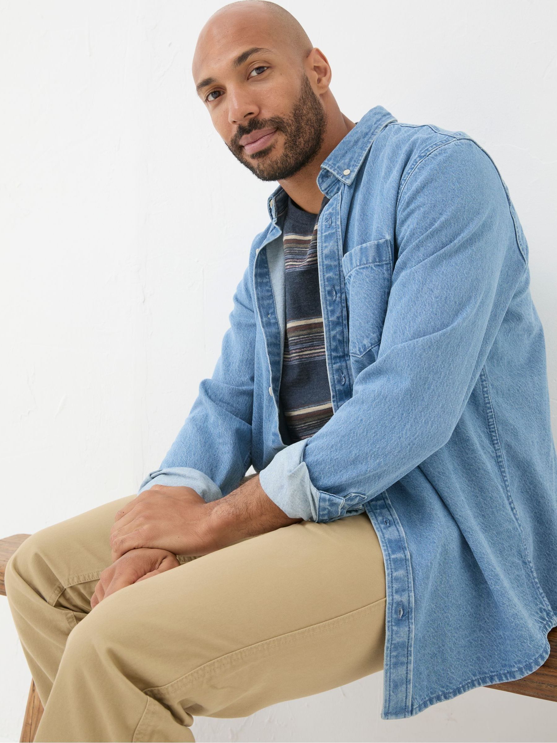 This long-sleeve denim shirt is an easy wardrobe staple. Designed for wearing many different ways, it's made from soft, comfortable cotton with a button-down collar and adjustable button cuffs. Leave it open over a short-sleeve tee or button it up with chinos.