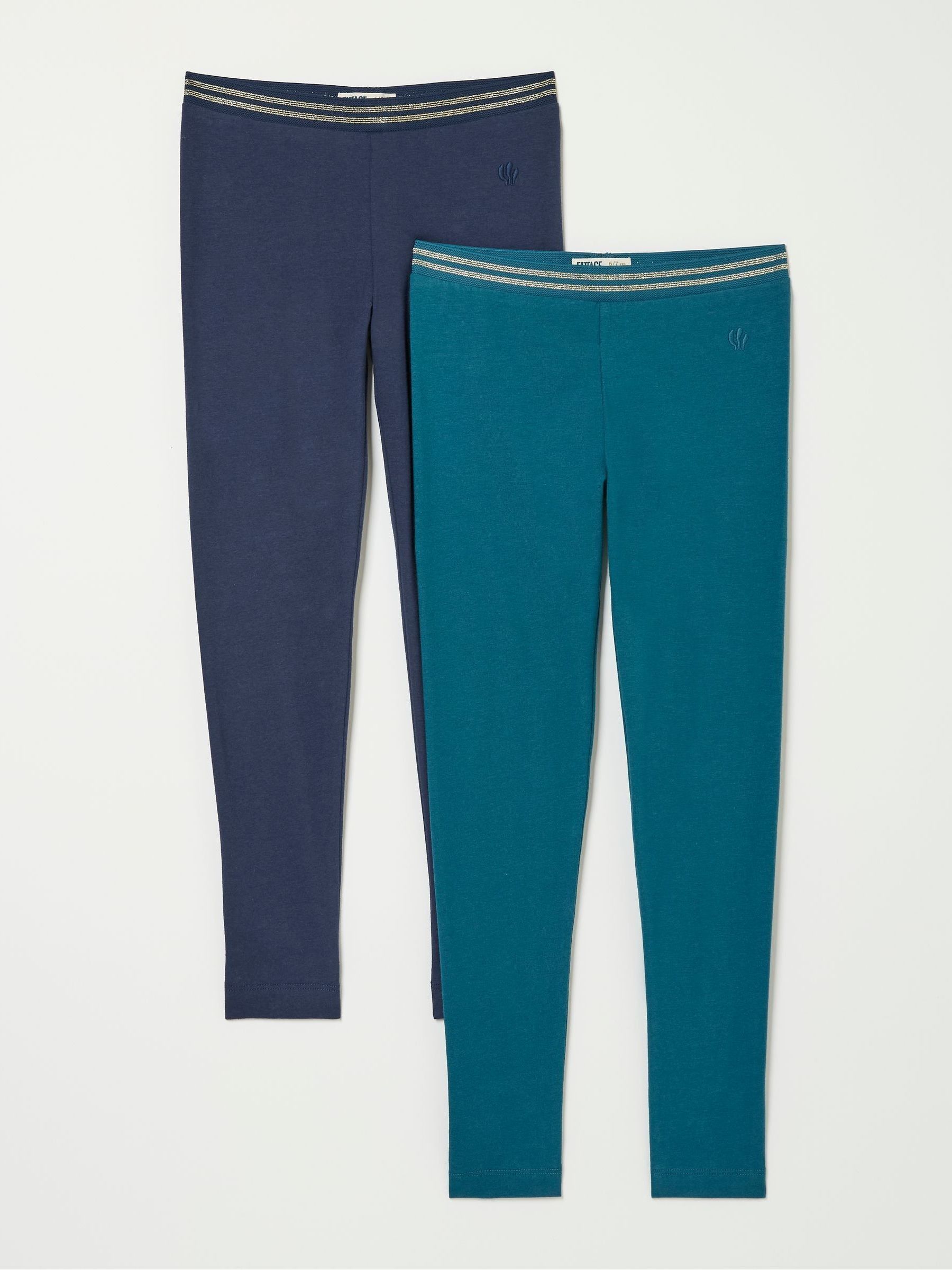 These plain two-pack leggings are perfect for quick and easy styling. Made from soft, breathable cotton with a touch of stretch for comfort; all you need is her favourite top and she's ready for the day. Breathable cotton with stretch Pack of two Double stripe around the waistband