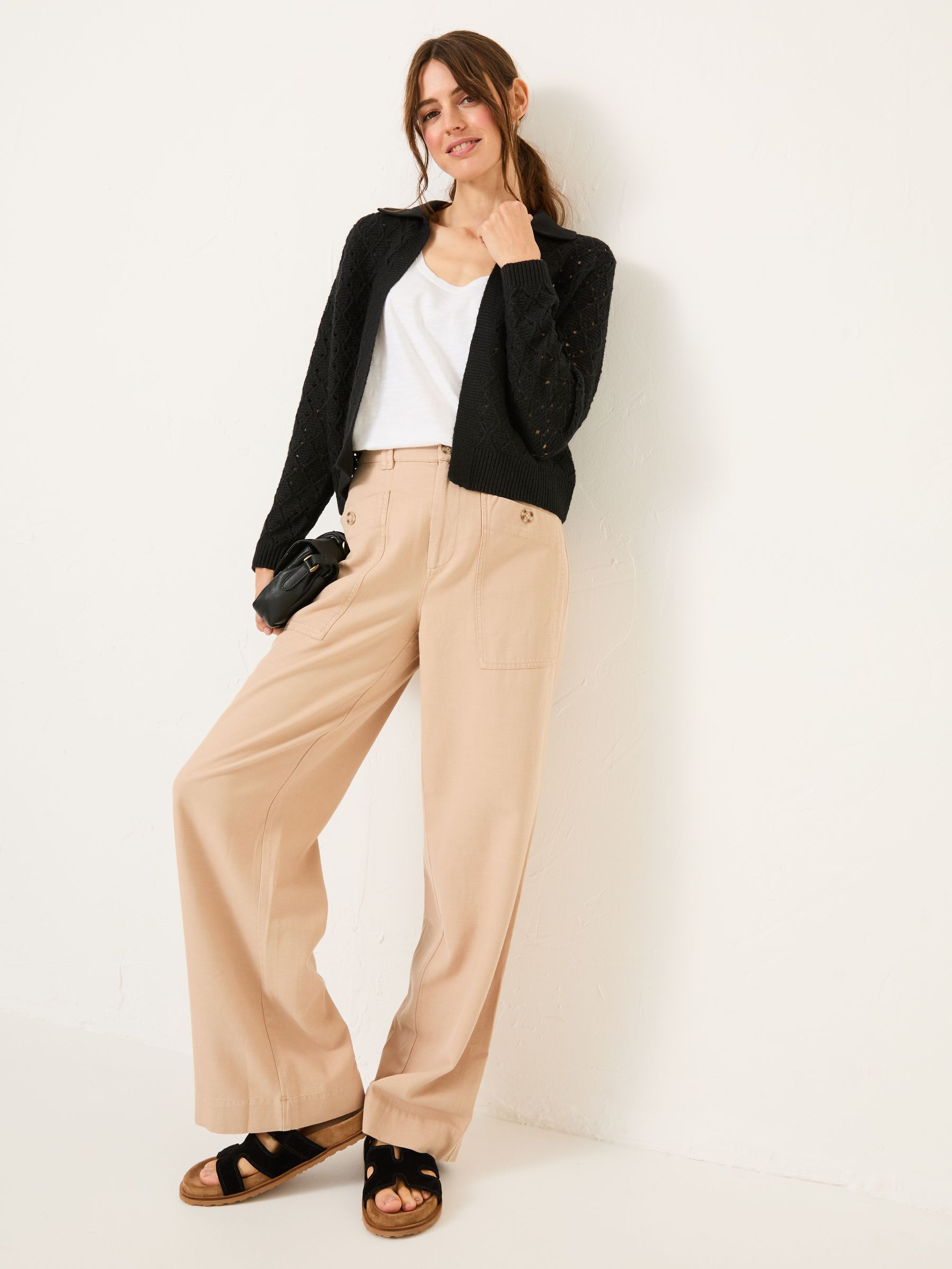 Combine comfort with style in our Lilah knitted cardigan, it is soft and breathable without any itch. Perfect for weekends out and about or weekdays in the office, its elegant pointelle design paired with a flattering colour and slightly cropped length, our Lilah will take your outfit to the next level. The Model is 5ft 9'' /175cm and wears UK size 8