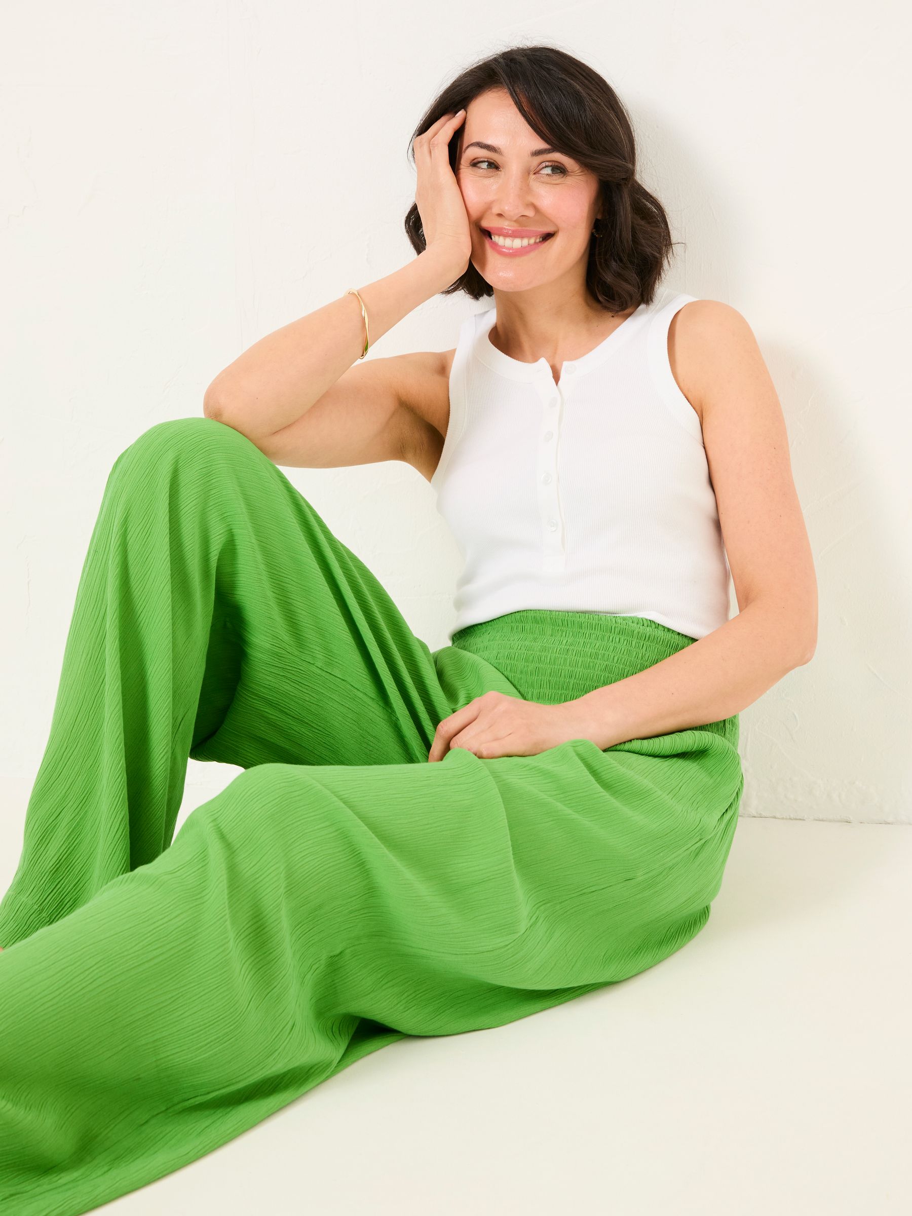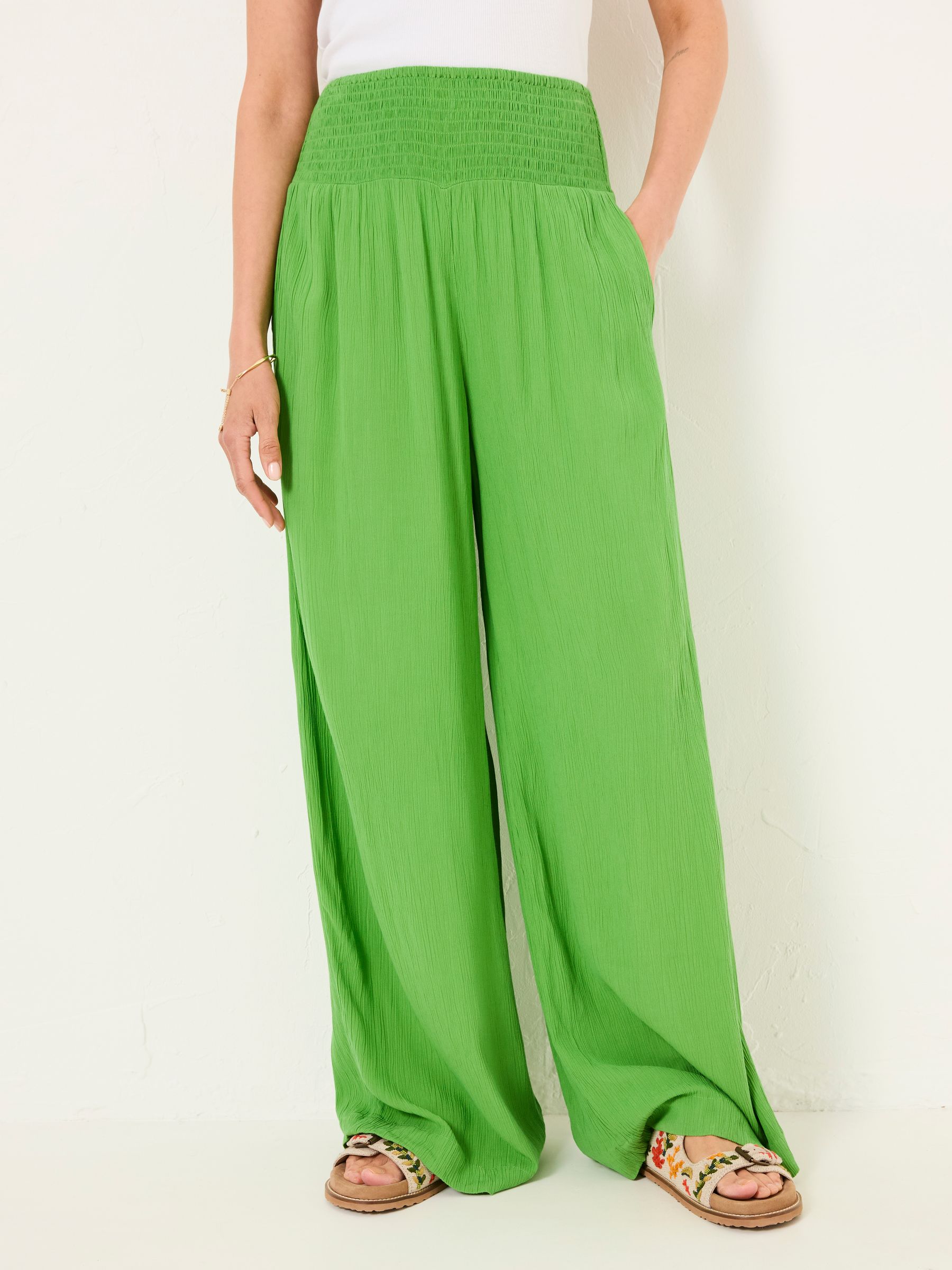 Bright Green Shirred Palazzo Wide Leg Trousers