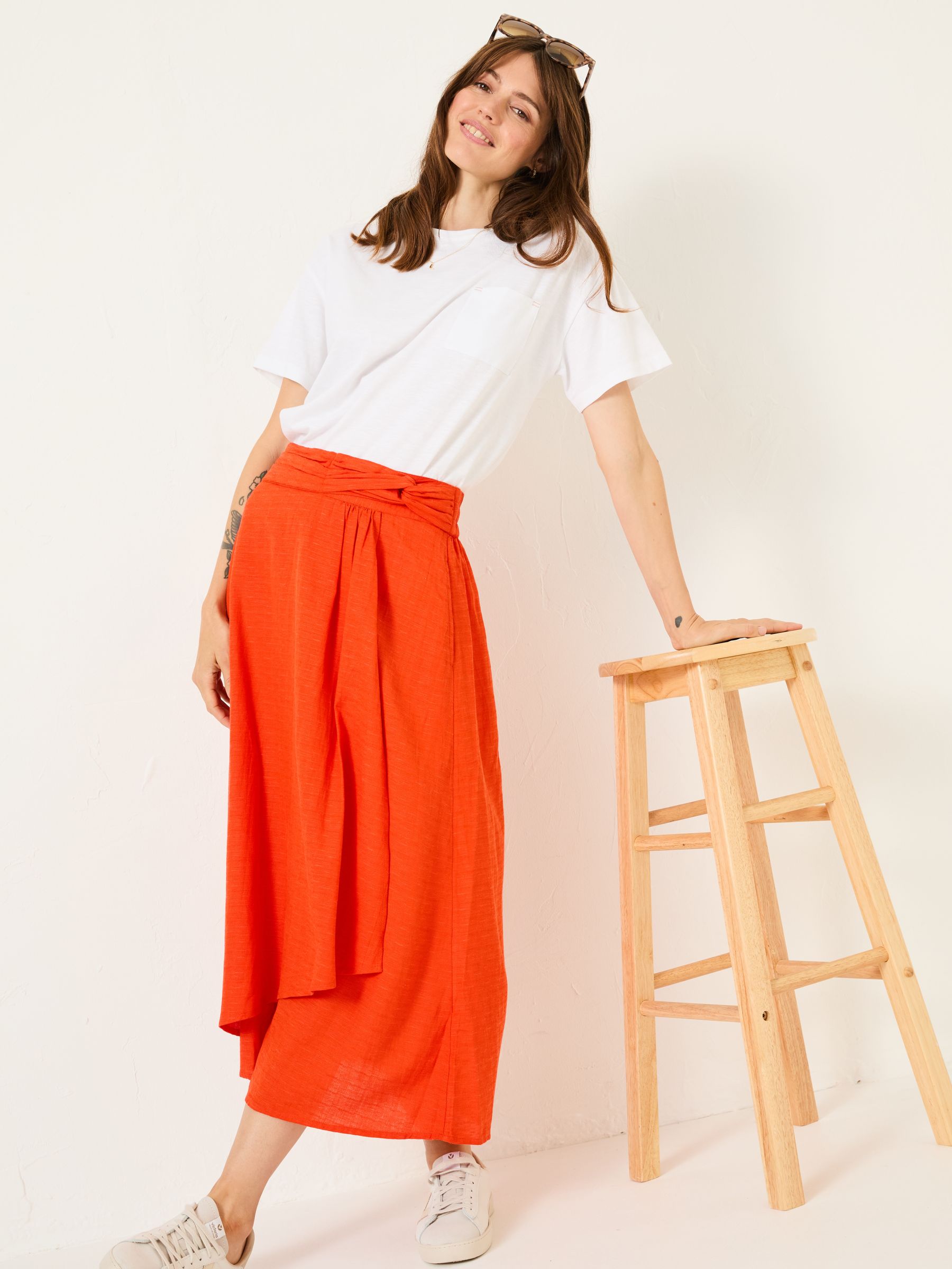 Made from a blend of LENZING™ ECOVERO™ viscose, cotton, and linen, the Judi Midi Skirt is cool, light, and oh-so-easy to wear. It's flattering, too, thanks to the midi length, knotted waist detail, and the asymmetrical shape. Oh, and it's also got pockets, making it a practical choice for all your plans this season. Asymmetrical front shape Flattering midi length It's got pockets! Measurement: Model is 5ft 9'' / 175cm and wears UK size 8 Long. Model is 5ft 8'' / 173cm and wears UK size 18 Regular.