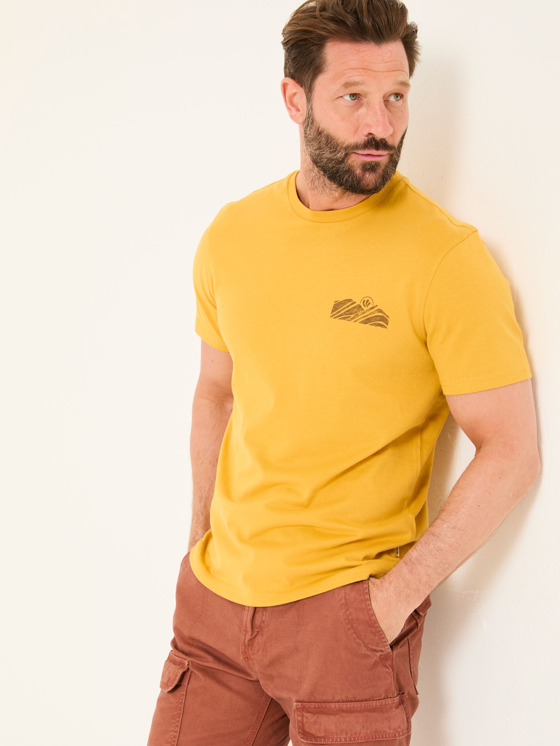 Stay stylish and comfortable in our graphic t-shirts. This hiking hills graphic t-shirt features an eye-catching design with a graphic on the back and front while also being made from 100% cotton making him soft and breathable for all day wear. Pair with your favourite pair of jeans or shorts for an elevated casual look. Model is 6'1''/185cm and wears UK size M