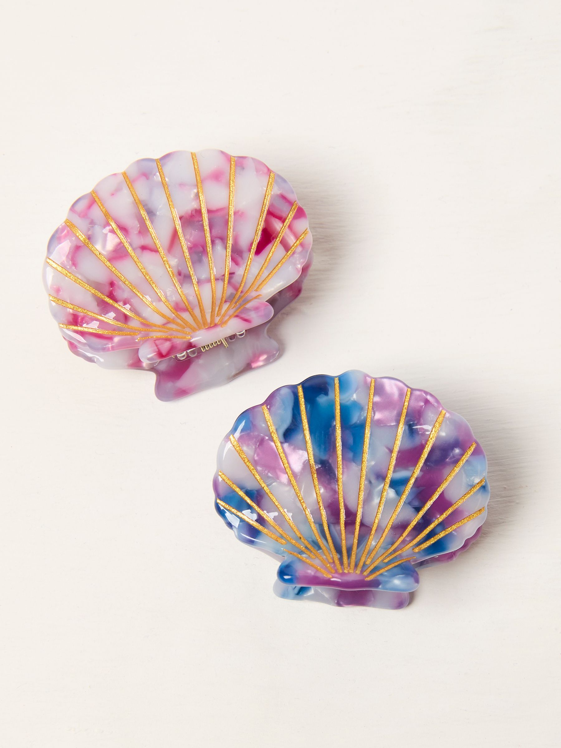 Add a touch of coastal charm to any look with this set of two shell hair clips. Designed in a marbled resin finish with dreamy swirls of colour, they’re perfect for sweeping back hair or finishing off a breezy updo. Pretty, polished, and ready for summer.