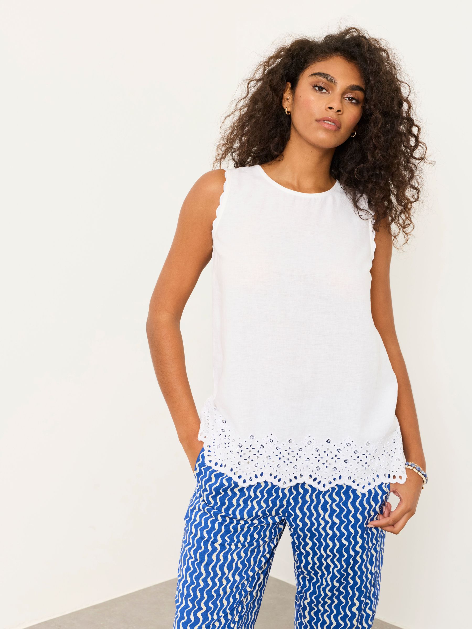 Add a touch of delicate charm to your wardrobe with our collection of women’s broderie tops. Featuring intricate embroidery and lightweight fabrics, these tops are perfect for layering, dressing up or adding a feminine touch to your casual look. At FatFace, our broderie anglaise tops, offer timeless, detailed designs with a fresh, airy feel. Elevate your style even more with our selection of patterned tops, bringing everything from subtle textures to bold prints that suit any occasion. Light, breezy, and endlessly versatile - these are the tops that will take your wardrobe to the next level.