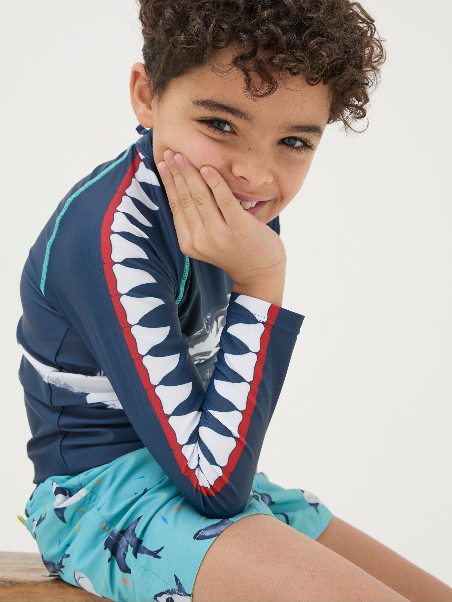 Get ready for days by the water with this Shark long-sleeved rash vest. It's perfect for wearing when they want to splash around in the sunshine. Simply pair it with some swim shorts and they're good to go.