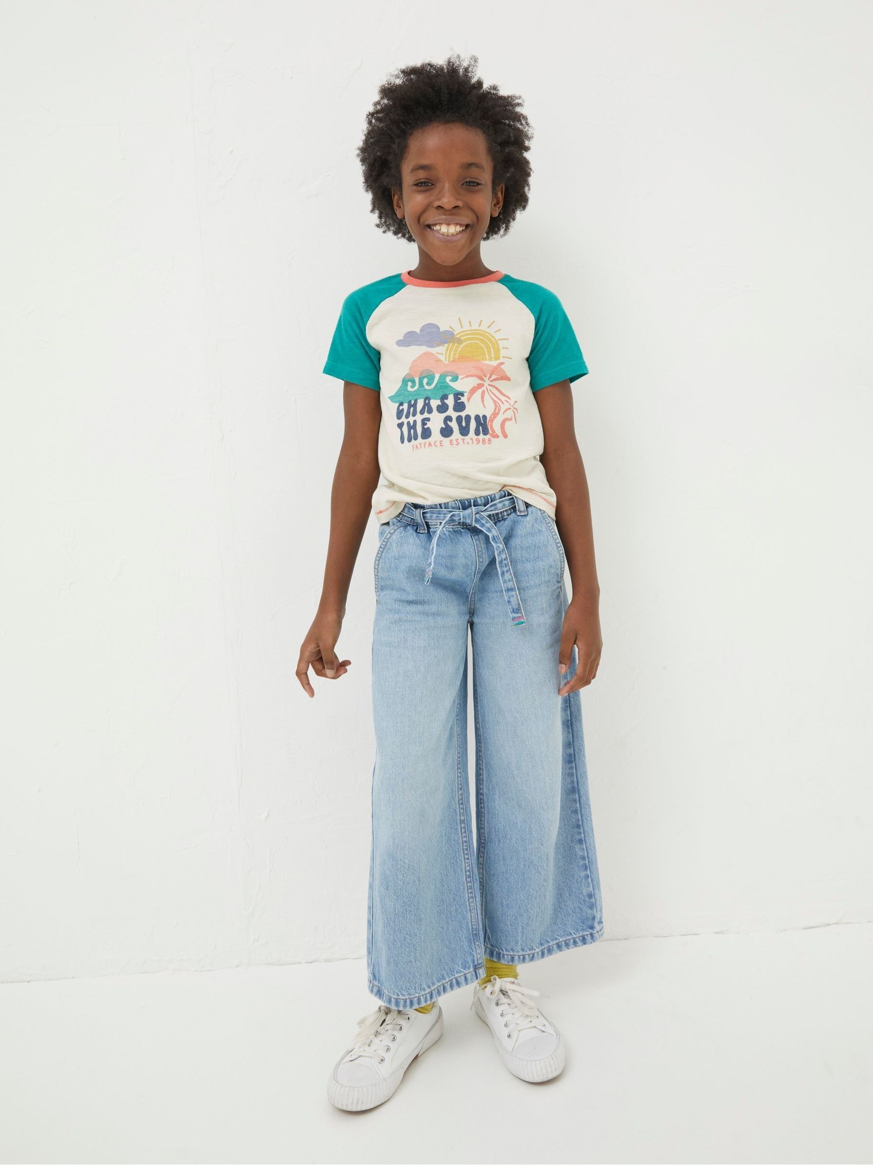 Our cotton graphic tees are seasonless and can be layered up as the weather cools down or worn alone when the sunshine comes through. They re comfortable year-round thanks to the natural, breathable material, perfect for the little ones. This particular style features a sun-loving graphic that pairs perfectly with their go-to jeans.