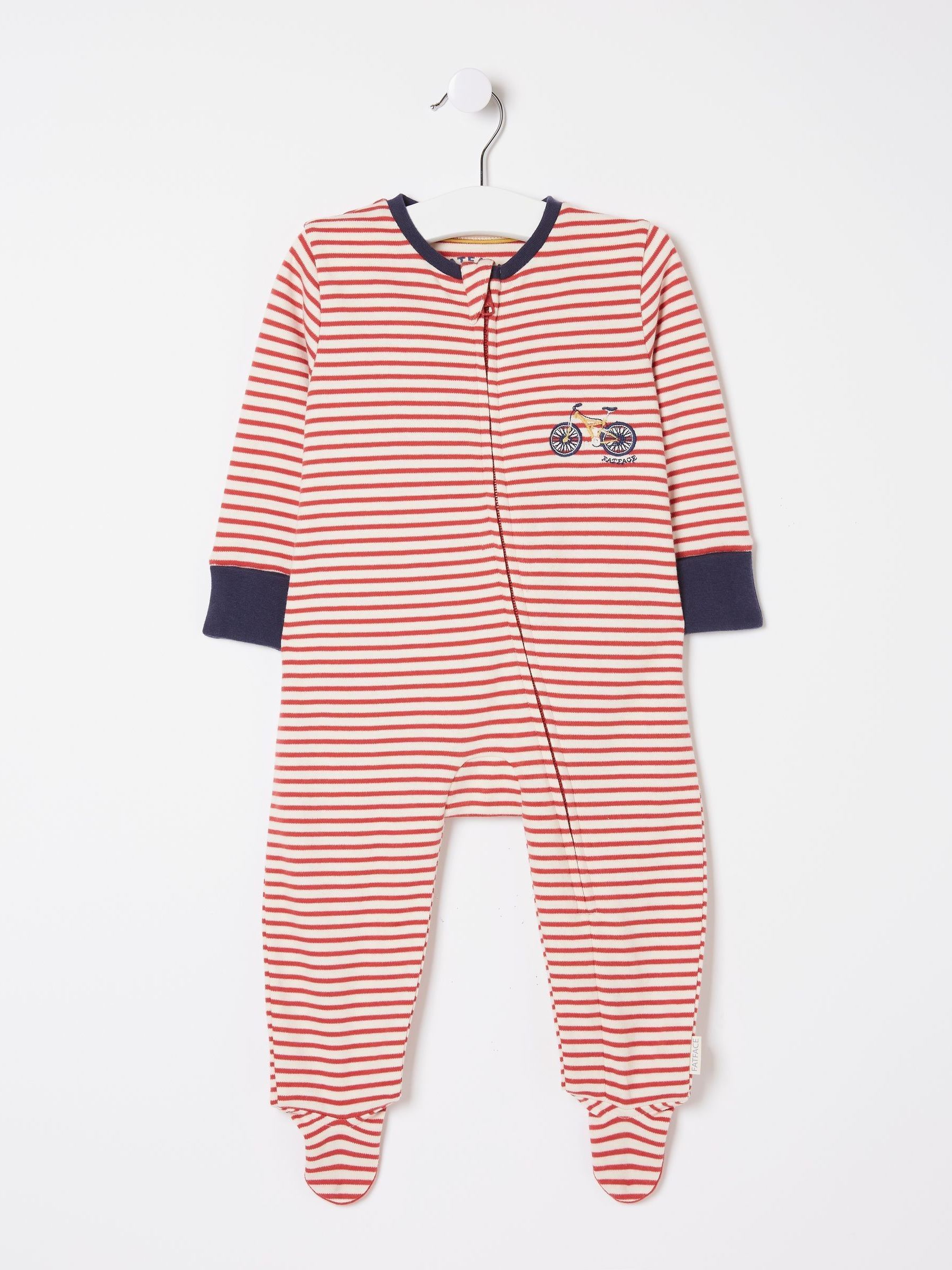 Make naptime extra comfy in our pretty sleepsuit. In a bright stripe this adorable sleepsuit features a zip up front to make dressing time stress free and closed feet for a snug and warm feel. Crafted from cotton to ensure all-day breathability.