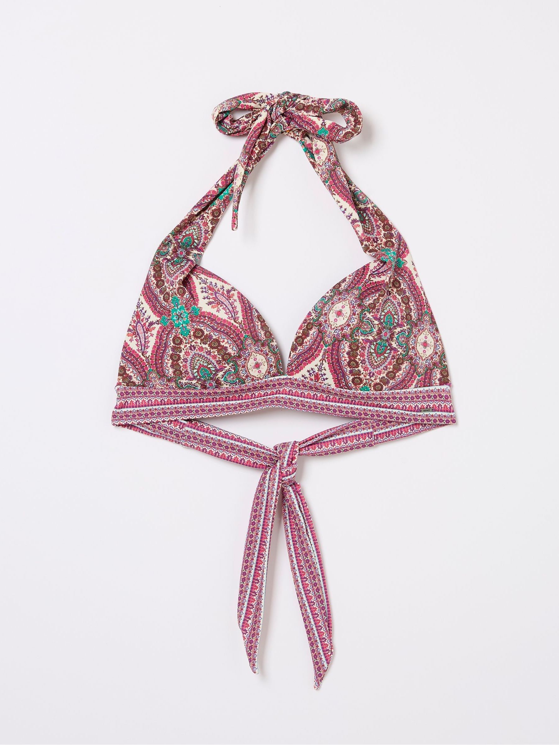 Dive into the warm weather with our Cody detail paisley bikini top. With a gorgeous print and shape, this is the perfect bikini for pool days and beach trips alike. This bikini top is padded and has a halter tie neckline and tie back, meaning you can adjust it for you perfectly.