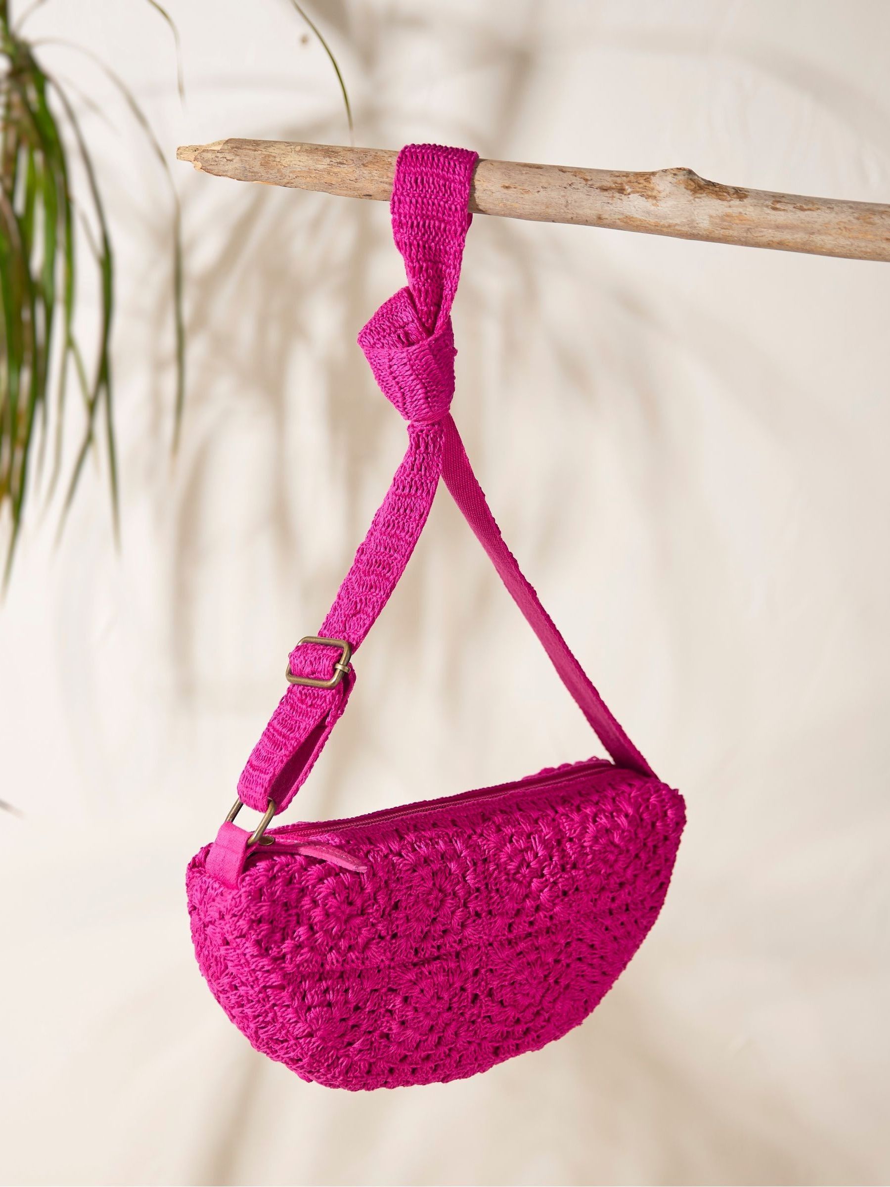 The perfect on-the-go bag, our Lettie Pink Sling Bag is a practical-yet-stylish option to carry with you on all your adventures. Featuring a macrame design, that's perfect for packing on warmer days and exploring new destinations, it boasts a zip-up roomy main compartment to keep all the things that matter at arm's reach. Change the strap, adjust the length and make it fit for you.
