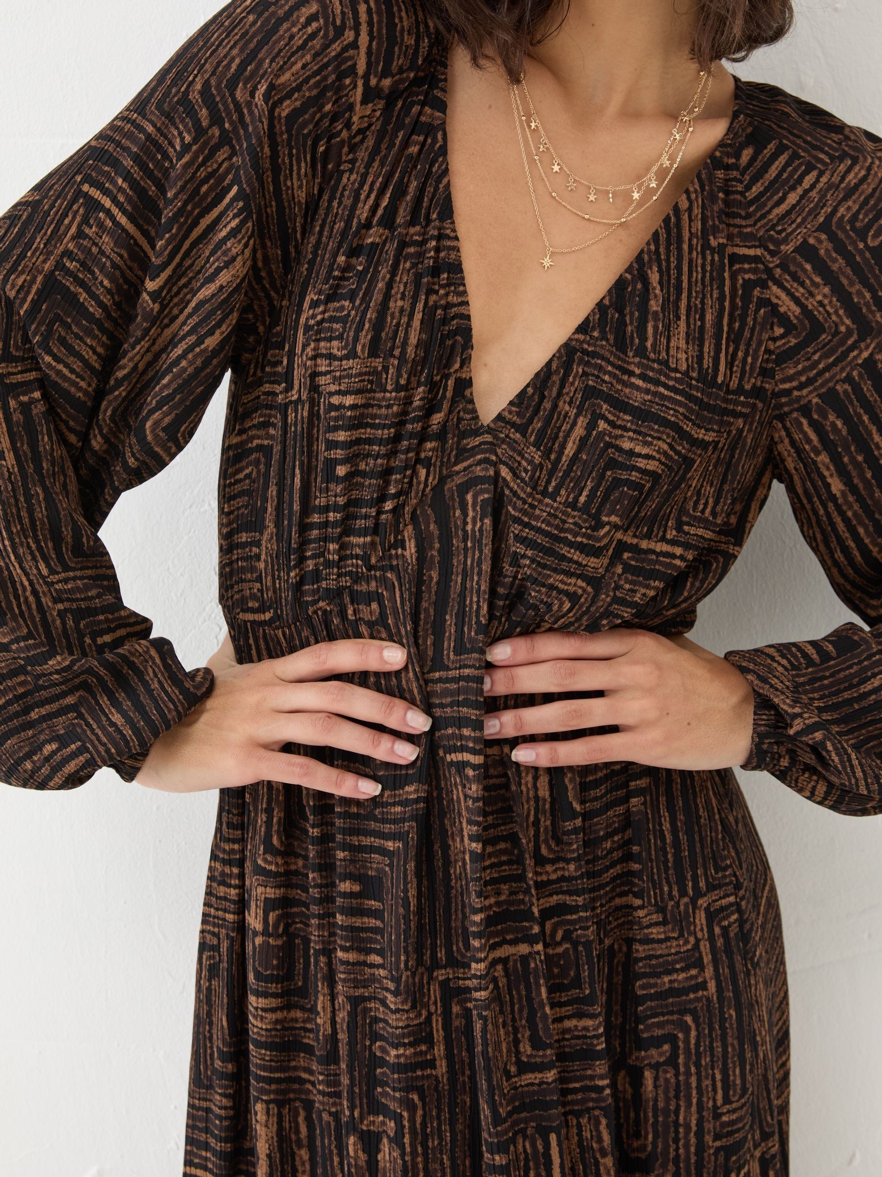 Crafted to a brand-new cut, our Noelle Maxi Dress is a super-flattering, wearable style for a range of after-work occasions. It has a beautiful V-neckline with an empire waist and subtle ruching for comfort and ease. The long sleeves are cuffed for a little bit of extra drama, while the sweeping tiered skirt offers a flattering silhouette. Oh, and of course it's finished with the FatFace signature - pockets! Wear it from day to night with boots and a leather jacket. This product has been made using LENZING™ ECOVERO™ viscose. Click here to find out more
