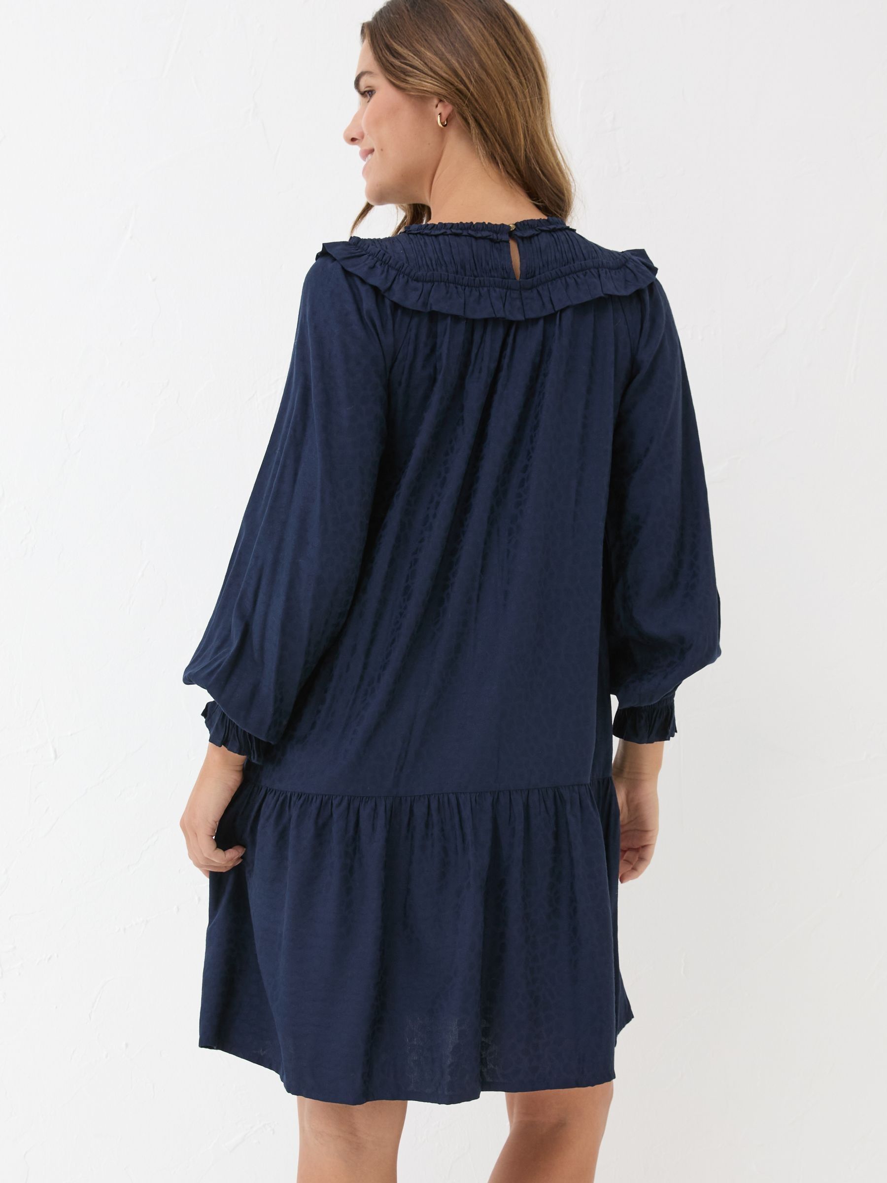 Go from desk to dancefloor in seconds wearing our Mika Jacquard Dress. Finished with frilly detailing, a flattering tiered shape and a button fastening on the back of the neck, it's a style you'll wear and love for all your plans. This product has been made using LENZING™ ECOVERO™ viscose. Click here to find out more