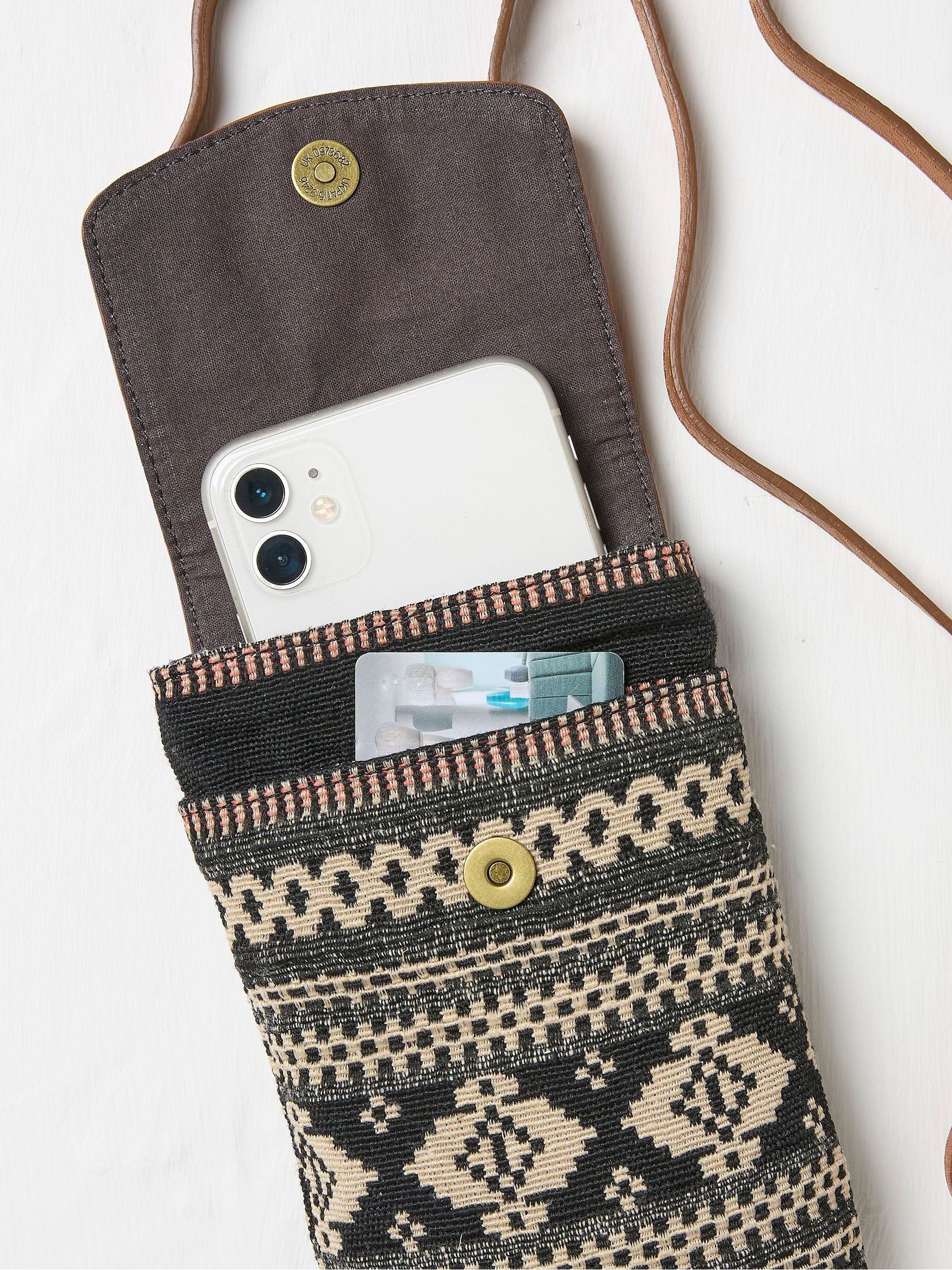 Keep your phone, keys and cards safe and secure with the Evie Woven Phone Bag. Small and compact, it features a stud fastening popper, a beautiful woven design and an adjustable shoulder strap for the perfect fit. Secure popper fastening Partly woven design Internal front slip pocket Adjustable strap