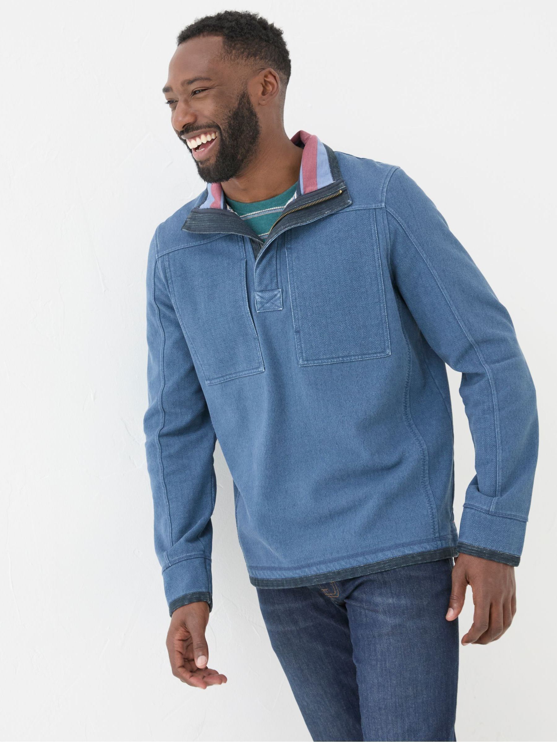 A favourite of yours for nearly 20 years and in tough, hard-wearing pique cotton, our Airlie Sweat is produced using industrial-strength sewing machines. comes in blue colour. Only a few factories in the world can make it. The result is a tough and hard-wearing garment with tons of cool features, including split sides, a dropped back hem and contrast stitching on the seams. Durable pique cotton Soft brushed lining Contrasting colour design