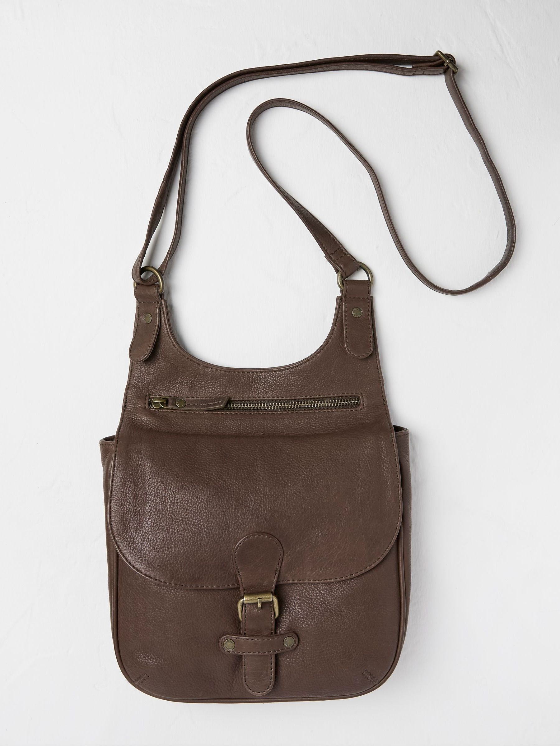 Give style the bold shoulder with the Brown Anna oiled leather crossbody bag. Made with high-quality durable leather, it'll last you for seasons to come. Plus, it has a beautiful bee-printed cotton lining and two secure zip compartments.
