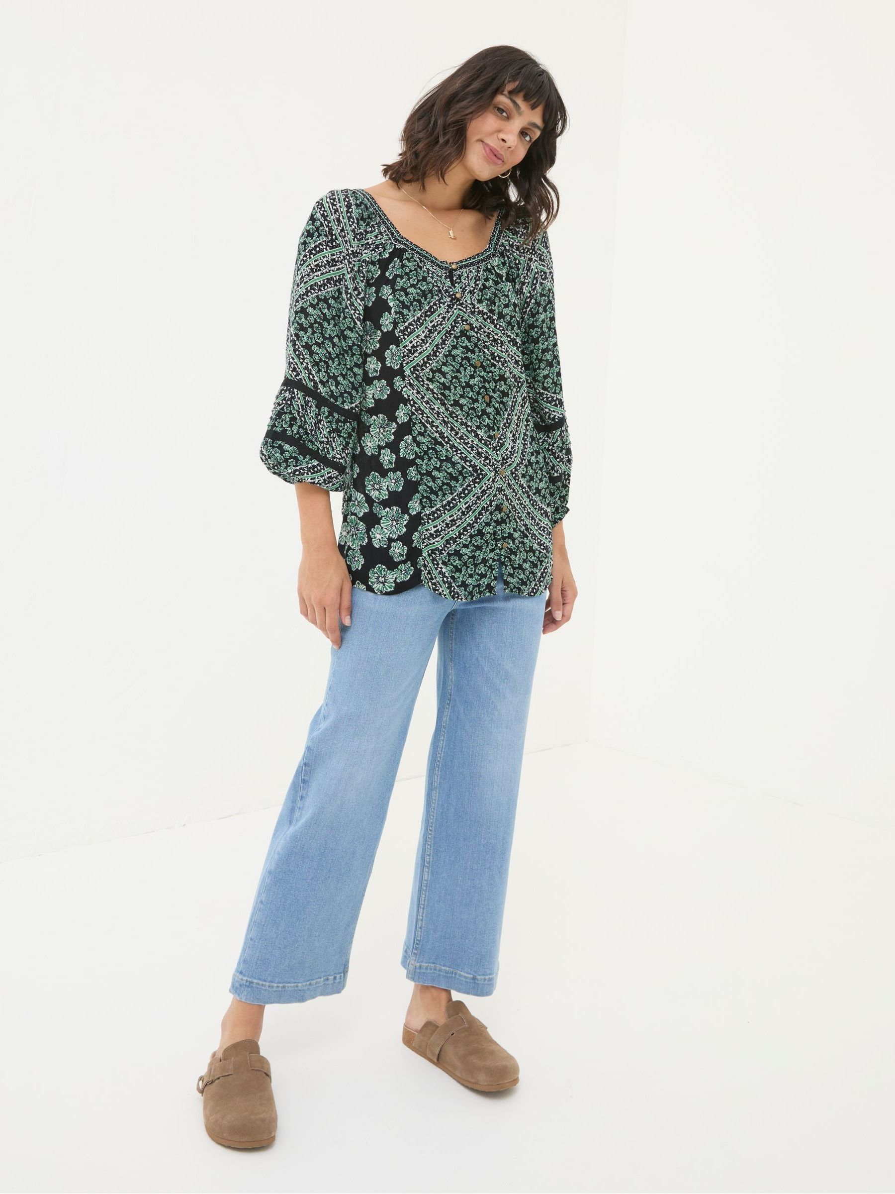 Crafted from light and breathable viscose, the Caitlin Spaced Floral Tunic is a bold printed blouse with a full button closure and loose fit for long-lasting comfort. Keep it simple with denim jeans or tuck it into a fitted skirt. Made from lightweight viscose Bold all-over print Full button front closure This product has been made using LENZING™ ECOVERO™ viscose. Click here to find out more