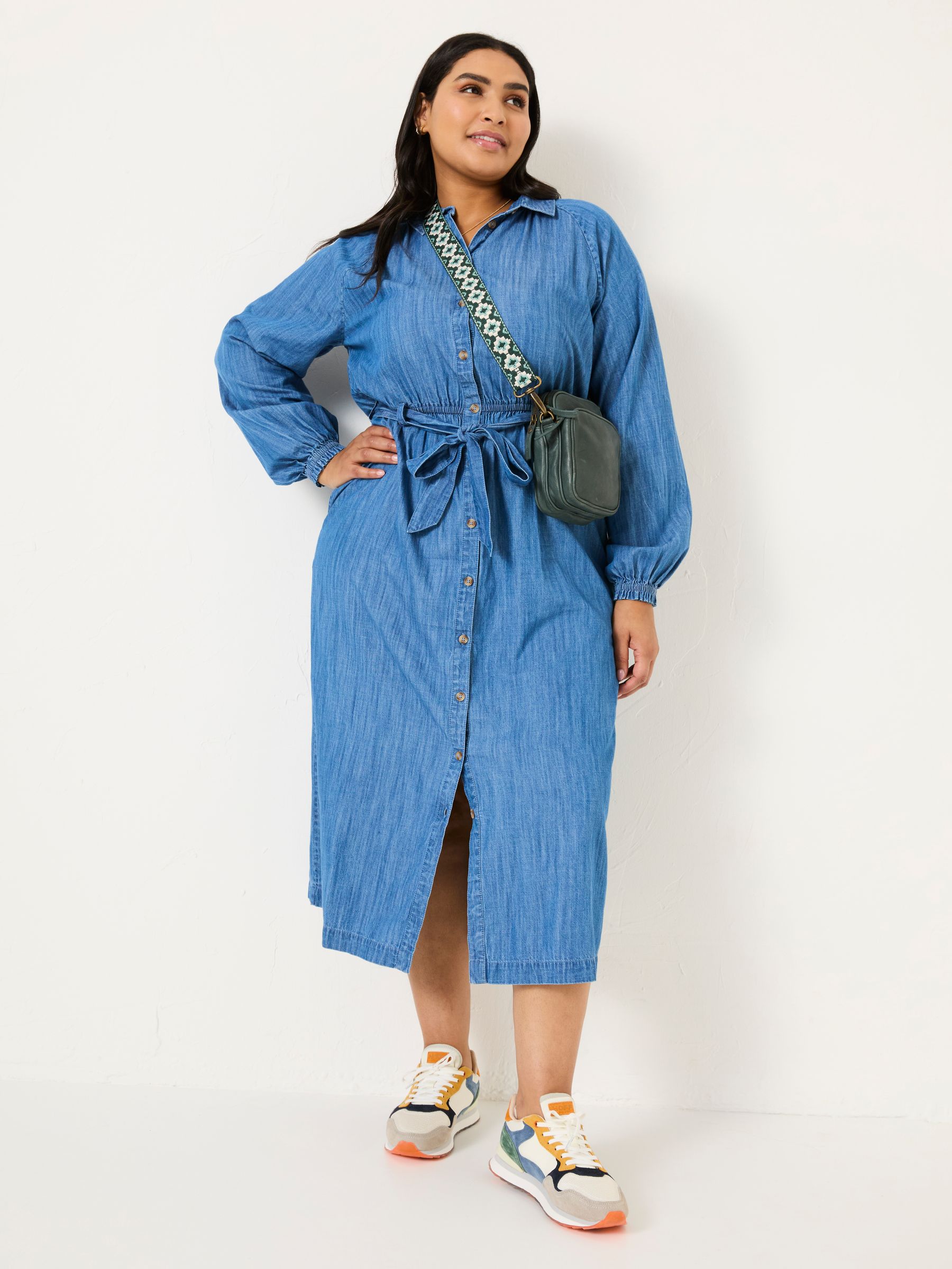 There's nothing more timeless than a denim dress - as our Abi midi dress proves. Crafted from supersoft cotton for next-to-skin comfort, it's perfect for casual weekends and dressed-down days in the office. The stretch waist and tie fastening guarantee a beautiful fit, while the full button front offers a classic look. Just add ankle boots. Made from supersoft cotton Flattering midi length Tie fastening with belt loops Elasticated waist and cuffs Full button front It's got pockets! Model is 5'9''/175cm and wears UK size 8 Model is 5'8''/173cm and wears UK size 18 Regular