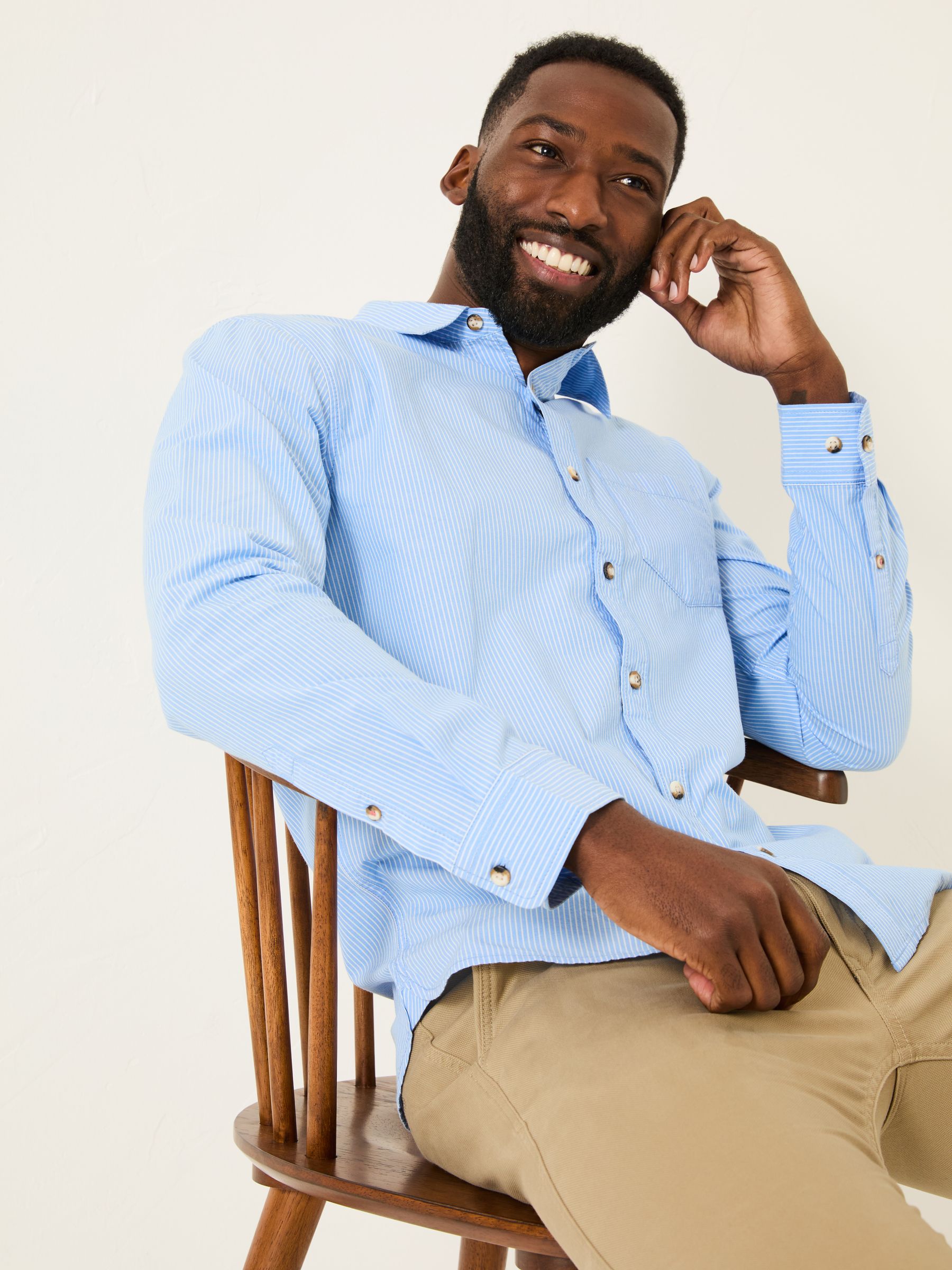With a curved hem, single chest pocket and adjustable button cuffs, this versatile long-sleeve shirt definitely earns its stripes.