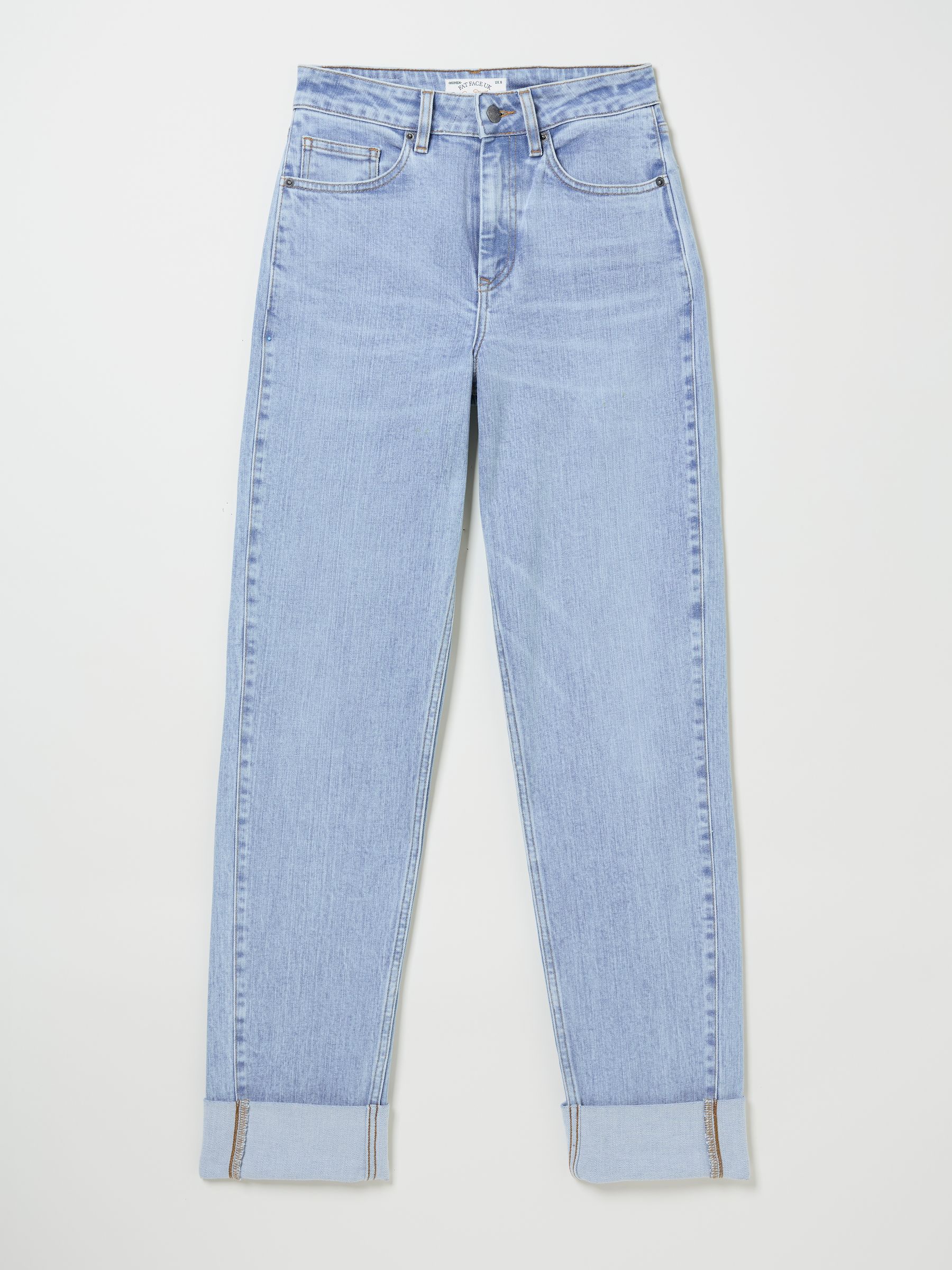Raya Light Blue Denim Wide Leg Turn Up Jeans