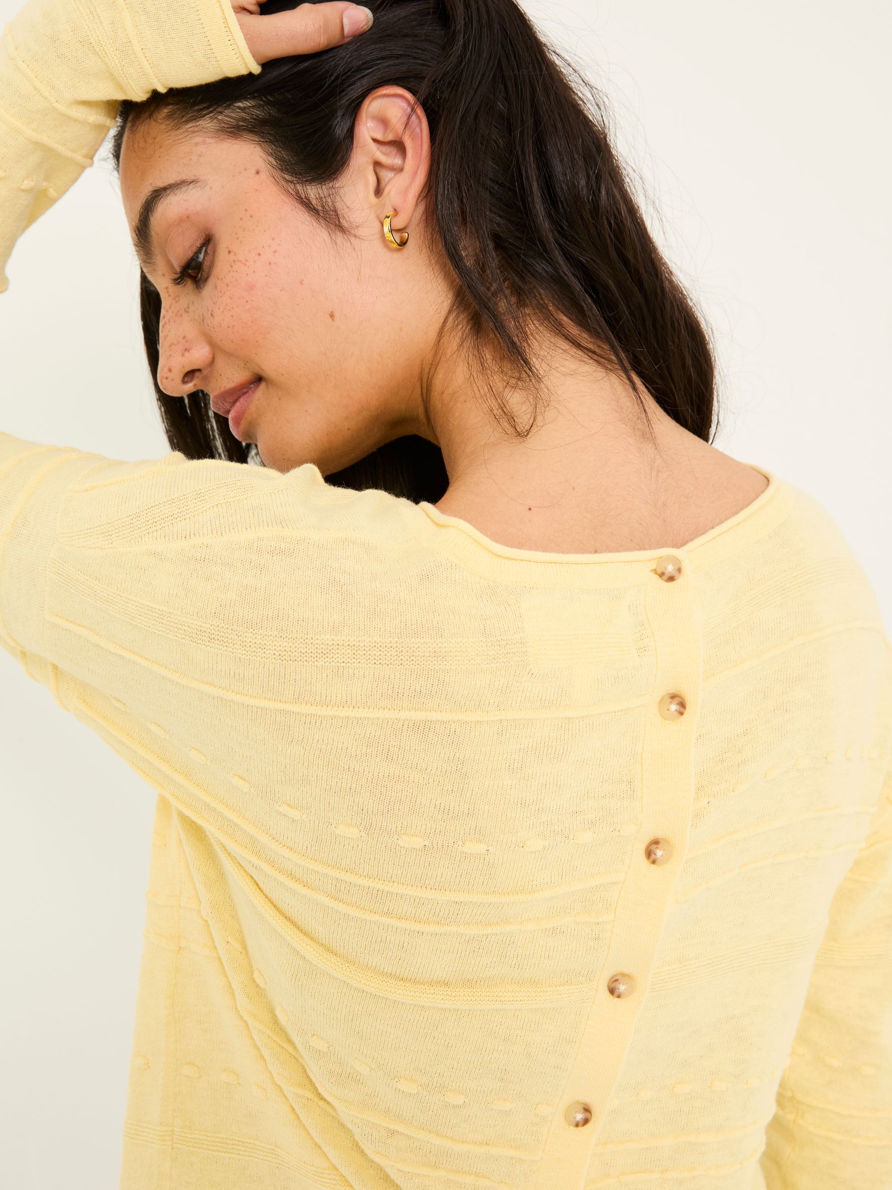 When the time comes for lighter layers, our Isabelle linen blend jumper is here to step in. The lightweight linen and cotton blend composition makes this layer soft, stylish and super breathable. With a classic fit, it features an extra special button-down back and inviting texture. Worn with leggings, jeans or skirts, it's a style staple that you'll reach for time and again. Model is 5ft 10''/178cm and wears UK size 18 Model is 5'9''/175cm and wears UK size 8