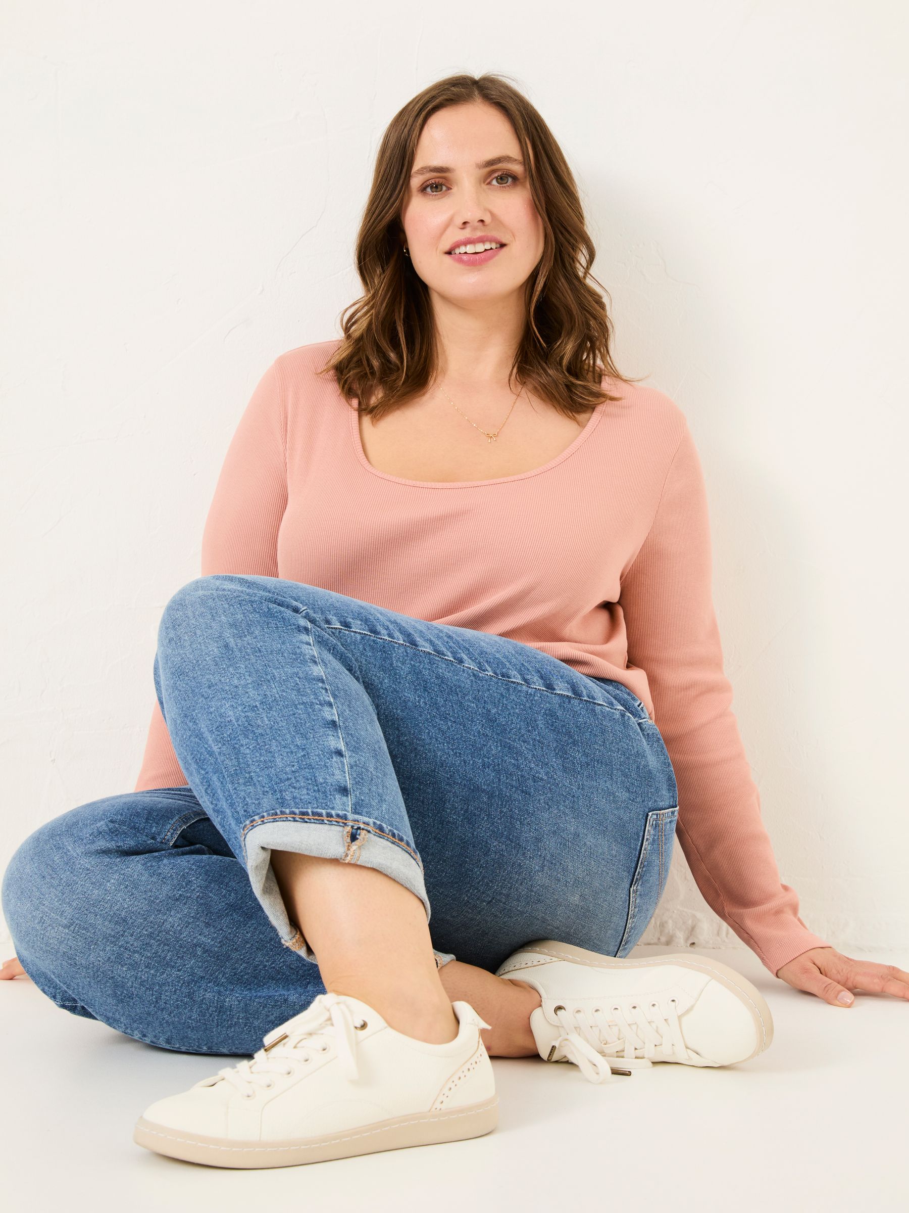 A wardrobe essential, this long-sleeved soft ribbed scoop neck top blends comfort and style. Made from 98% cotton with a touch of stretch, it's the ideal piece to see you through the seasons. Super versatile, slim-fitting and soft, this is a staple you'll keep reaching for. Measurements: Model is 5ft 9''/175cm and wears UK size 8 Model is 5ft 8''/173cm and wears UK size 18