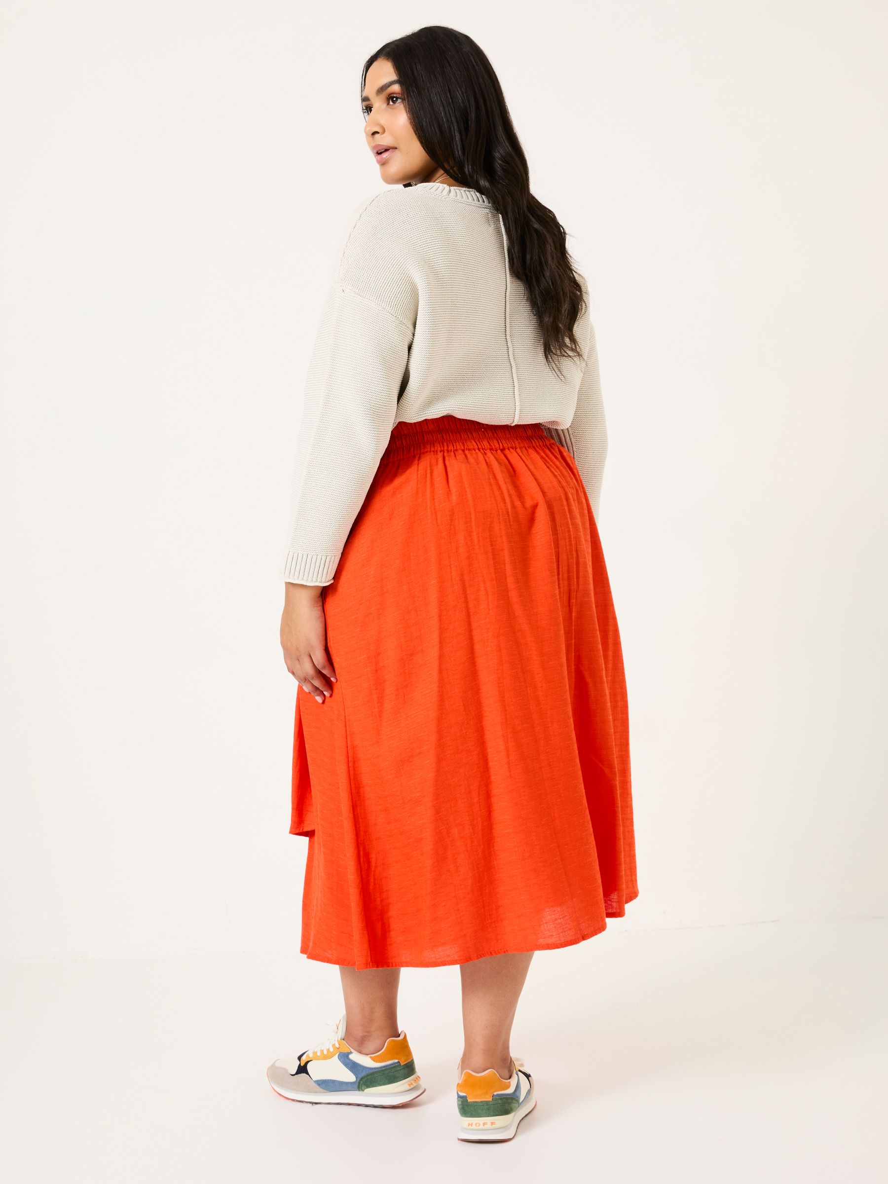 Made from a blend of LENZING™ ECOVERO™ viscose, cotton, and linen, the Judi Midi Skirt is cool, light, and oh-so-easy to wear. It's flattering, too, thanks to the midi length, knotted waist detail, and the asymmetrical shape. Oh, and it's also got pockets, making it a practical choice for all your plans this season. Asymmetrical front shape Flattering midi length It's got pockets! Measurement: Model is 5ft 9'' / 175cm and wears UK size 8 Long. Model is 5ft 8'' / 173cm and wears UK size 18 Regular.