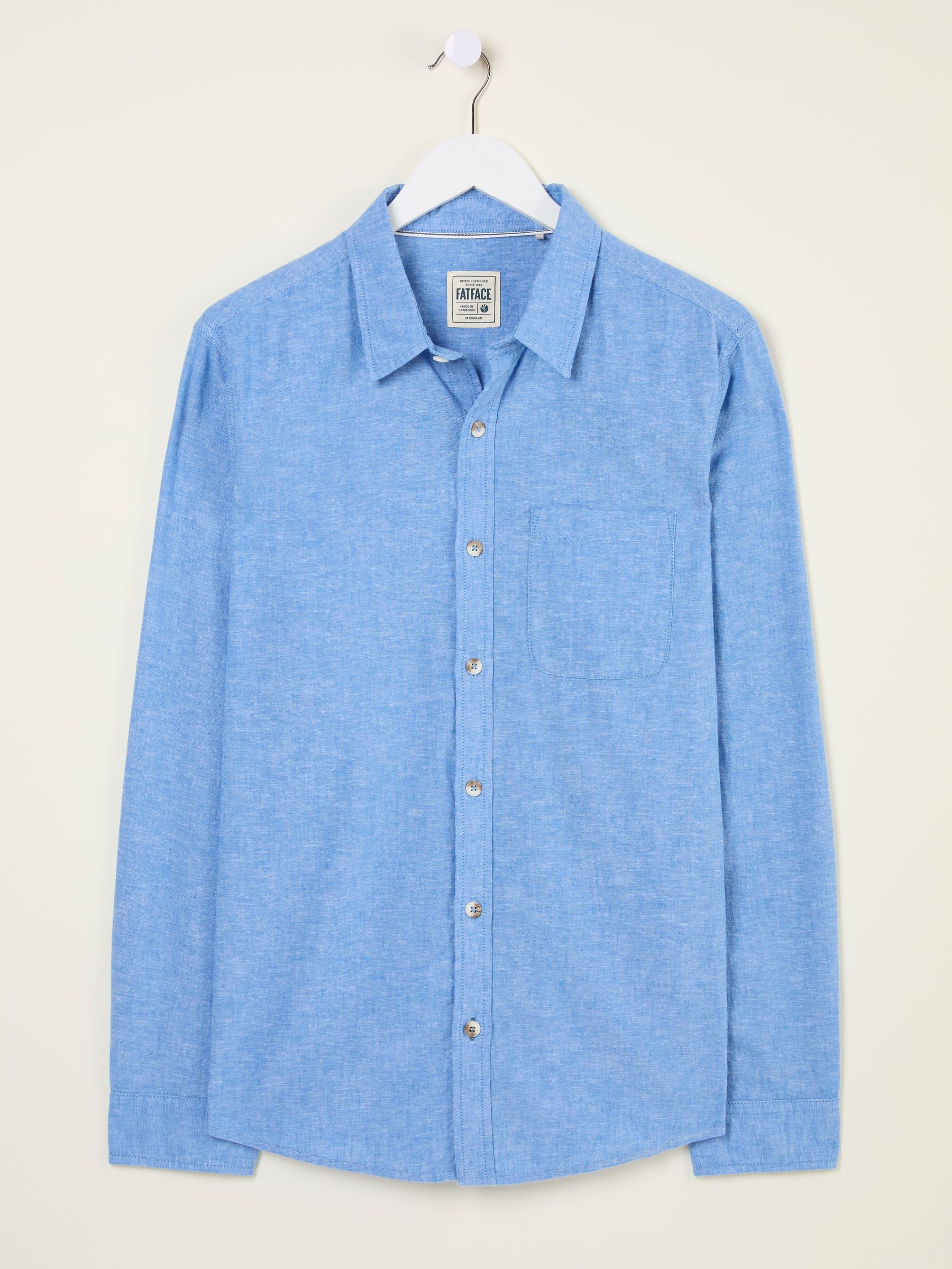 Our Bugle Bright Blue shirt is the perfect piece to dress up or down. Pair with some trousers and loafers for dinner with friends, or with chino shorts and flip flops for days by the beach. He is a versatile and easy-to-wear shirt, featuring a regular collar and long, adjustable sleeves. Crafted from a soft, cooling linen and cotton blend, he is lightweight and breathable.