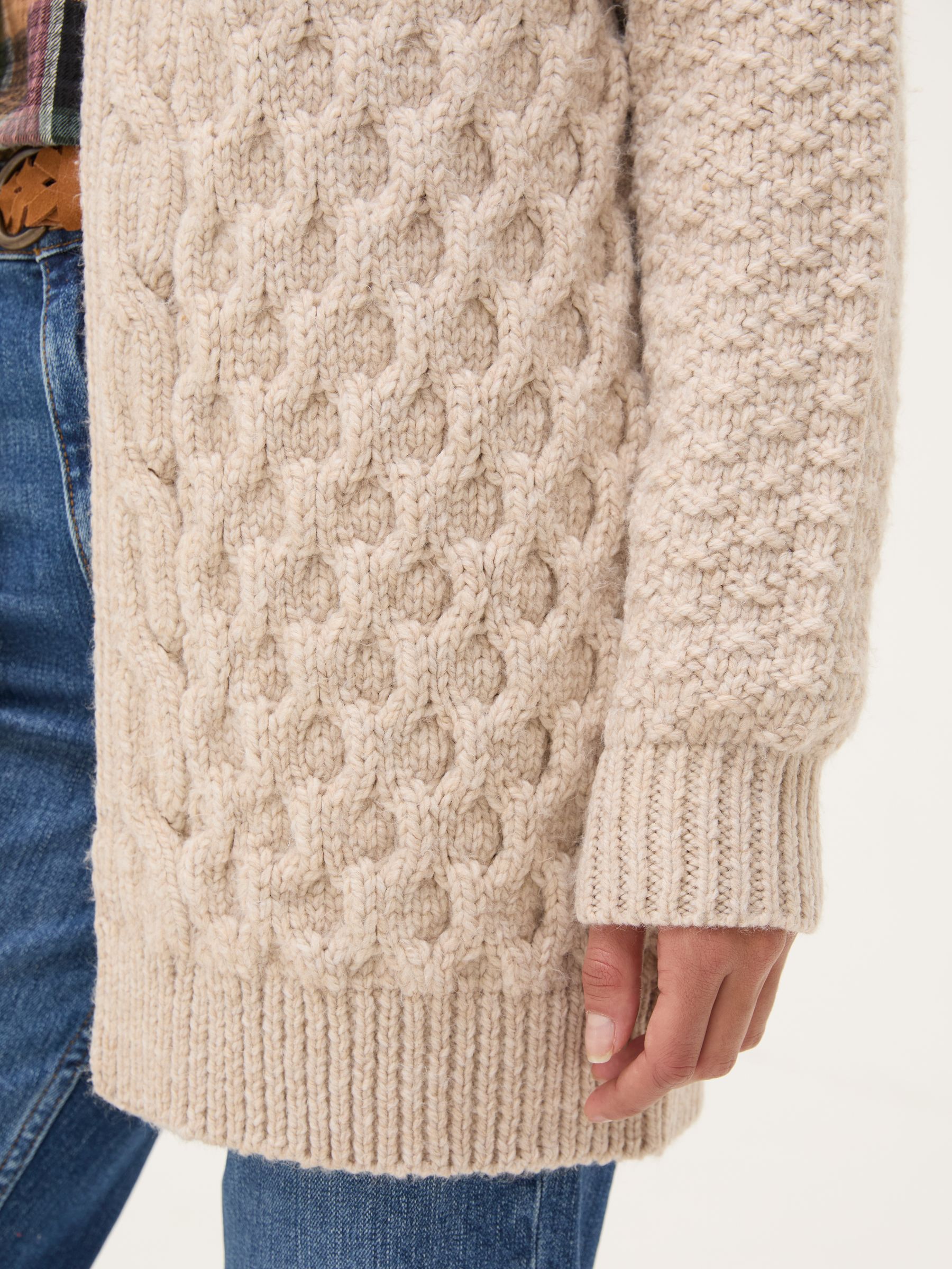 The Ezzie longline cardigan is a flattering chilly-weather staple made from a textured knitted fabric. Layer it over your favourite outfits for extra warmth.