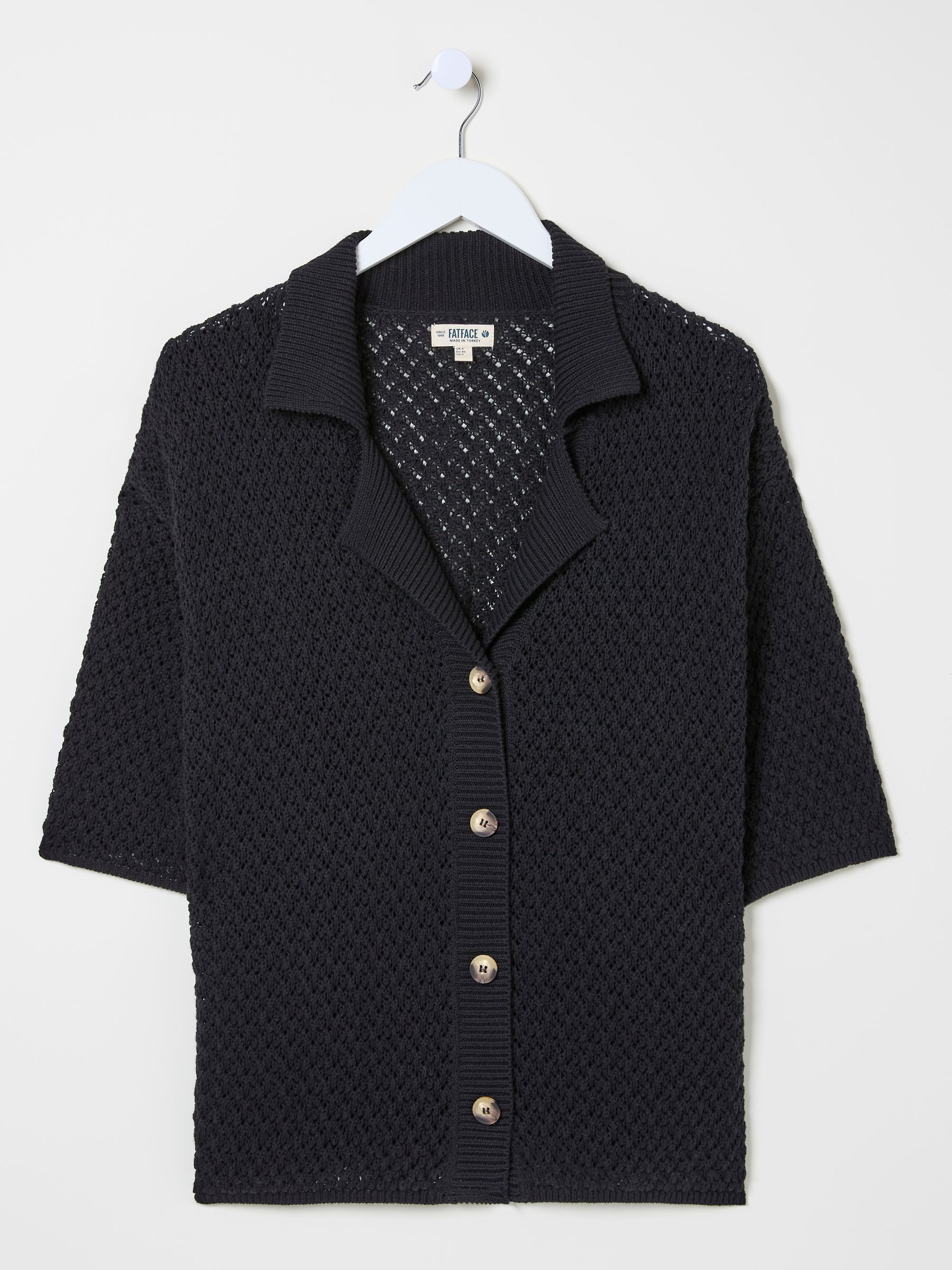 It looks like a shirt but feels more like a cardigan – that means our Knitted Shirt is bound to be a style winner. The resort-style silhouette offers relaxed vibes, while the button-up fastening, pointed collar and short sleeves bring comfort to the front and centre. With its soft knitted fabric, you really can wear this short-sleeve shirt with anything. Soft knitted fabric Pointed collar Pull-on style Four-button fastening Model is 5'8''/173cm and wears UK size 8.