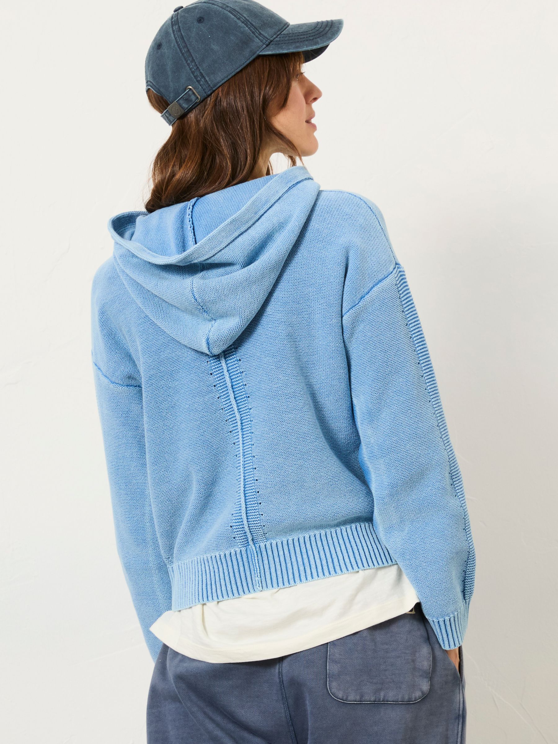 Blue Lana Laundered Knitted 100% Cotton Hoodie