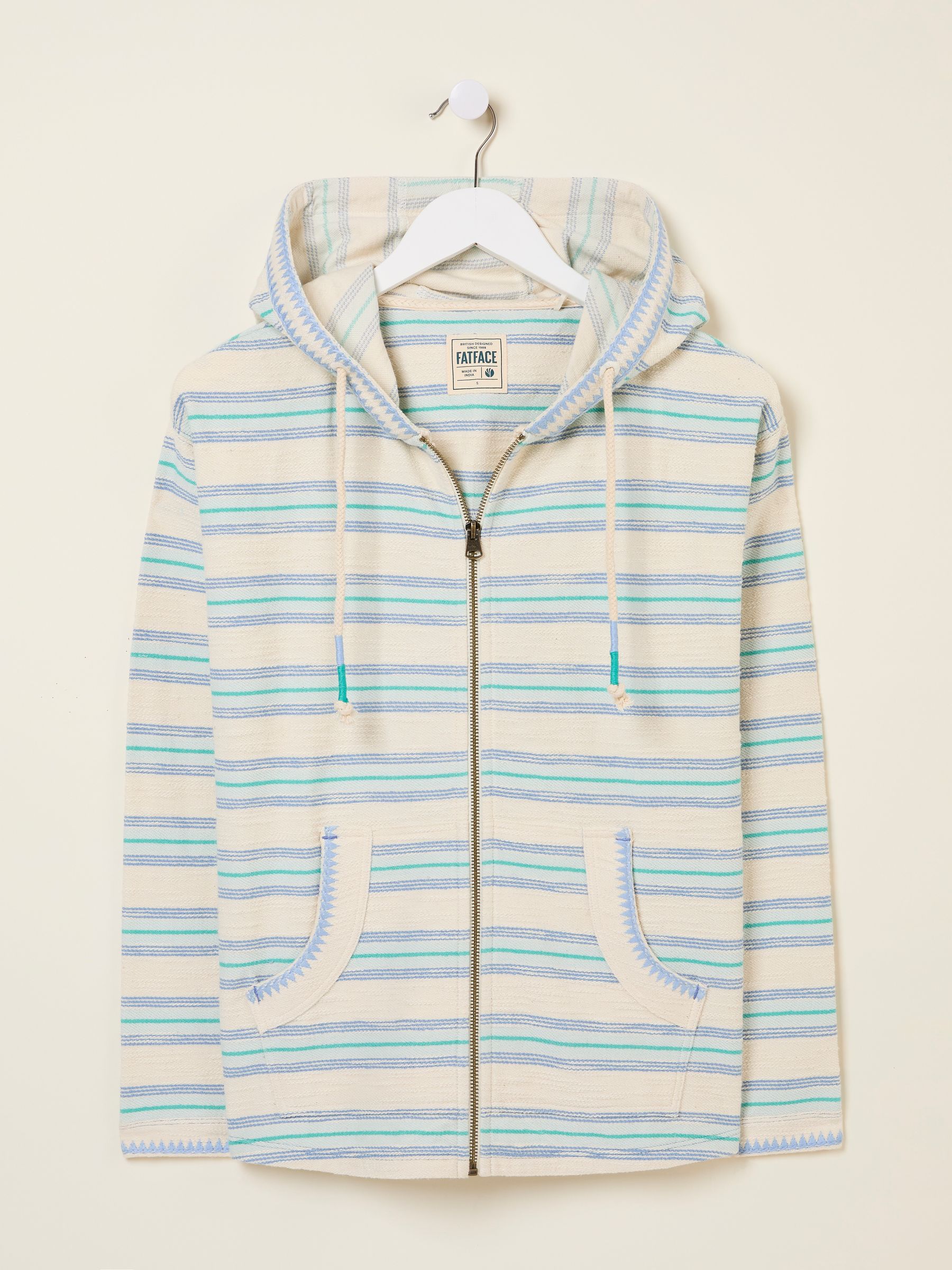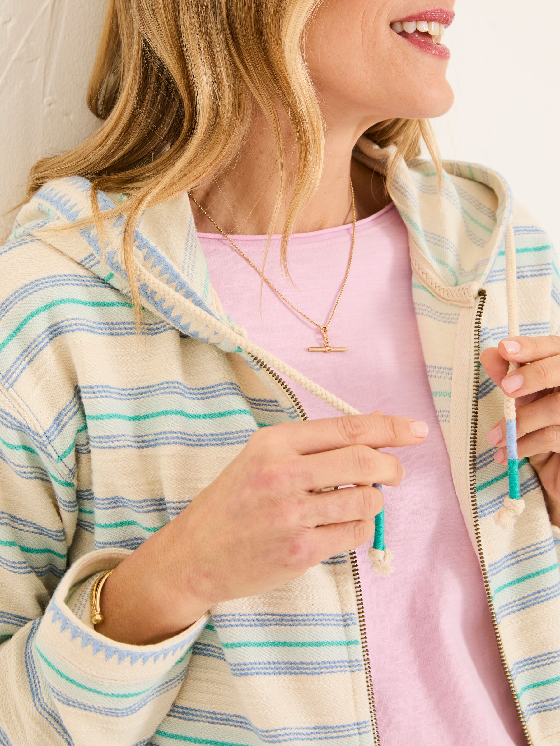 Choose the comfortable option in our zip through hoodies, the perfect choice for when the clouds roll in. Made from a super soft and breathable 100% cotton, our hoodies will keep you feeling warm and snug. Featuring a relaxed fit, an adjustable drawstring hood and a boxy shape, this is a staple for your summer wardrobe. Model is 5'9''/175cm and wears UK size 8