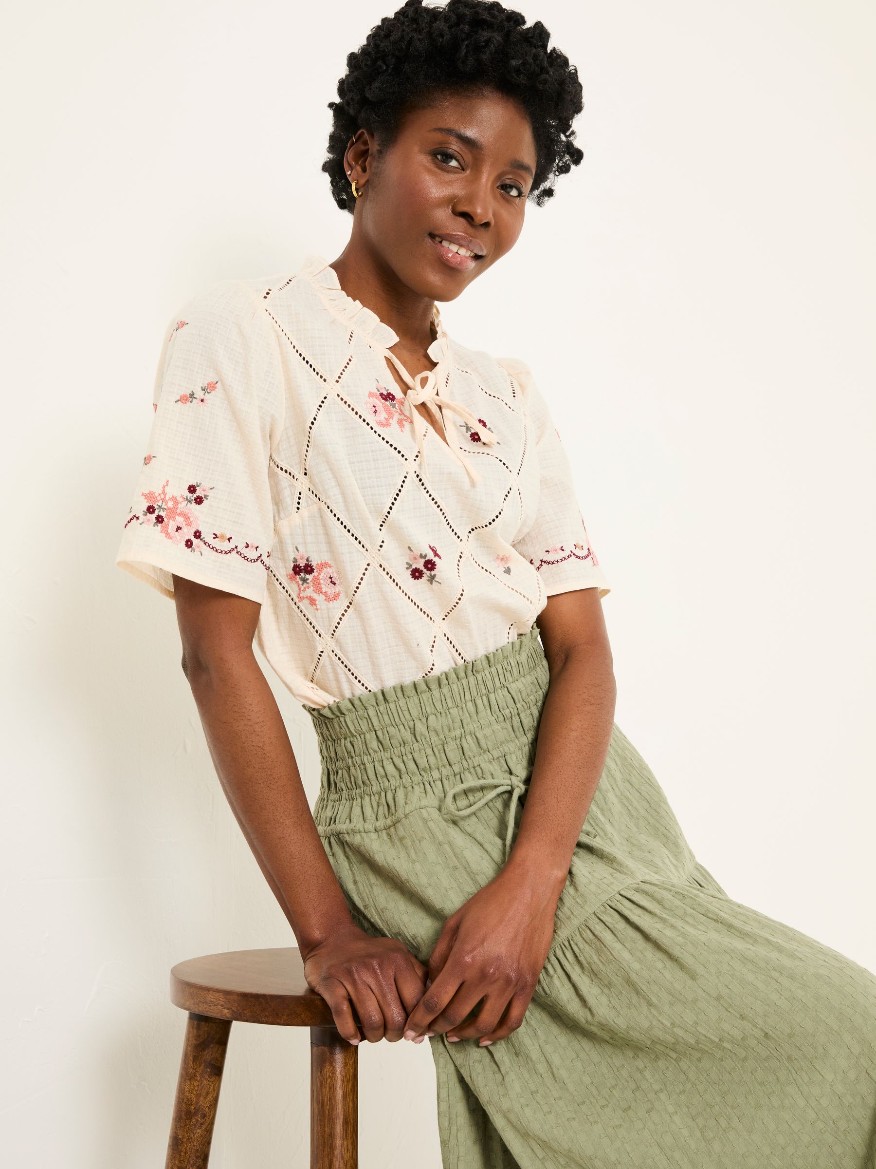 She is versatile and looks stunning, our Airee Beeble blouse is the ultimate piece your wardrobe is begging for. Bringing together our love for quality craft and timeless style, the FatFace x Beeble collection is inspired by the hard work of bees and the beauty of the natural world. Pair with some denim shorts and trainers for a brunch in the sun or dress up with a flowy maxi skirt and some sandals for evenings on holiday. She is breathable and lightweight so easy to wear in the sun while also looking stylish all day long.