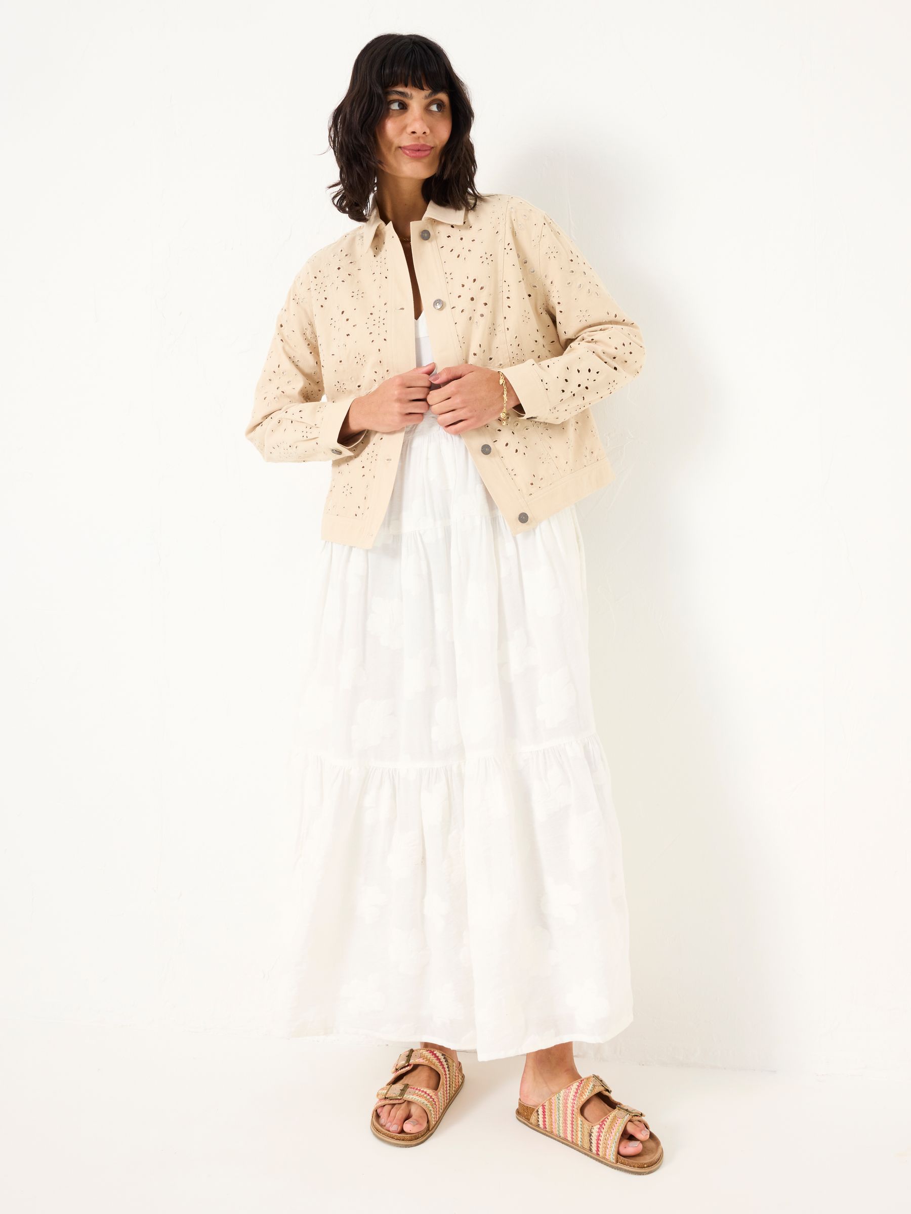 The Hazel broderie jacket is the ideal lightweight layer to complement all your favourite outfits. Featuring a delicate, feminine broderie design, it adds a touch of elegance to any look. Made from 100% cotton, this jacket ensures all-day comfort with its soft, breathable feel. With a flattering relaxed fit and slightly cropped length, Hazel is the versatile wardrobe essential you’ll reach for again and again, effortlessly pairing with anything in your wardrobe. Model is 5'9''/175cm and wears UK size 8 Regular centre back neck to hem 22" / 56cm.