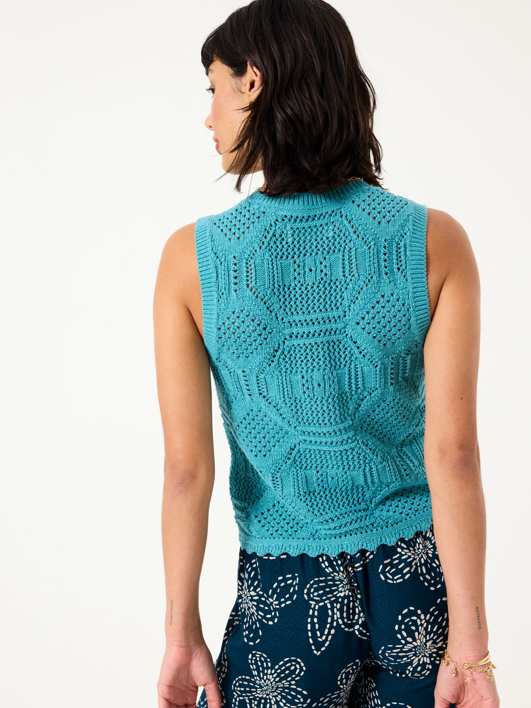 Breeze through summer in our Jodie knitted vest, woven with a delicate pattern and a classic button-down front. Lightweight and breathable, it's perfect for sunny days and cool evenings. Layer over a dress for a sweet touch or pair with shorts and a tank for effortless dressing - a must-have for easy summer style. Model is 5'9''/175cm and wears UK size 8