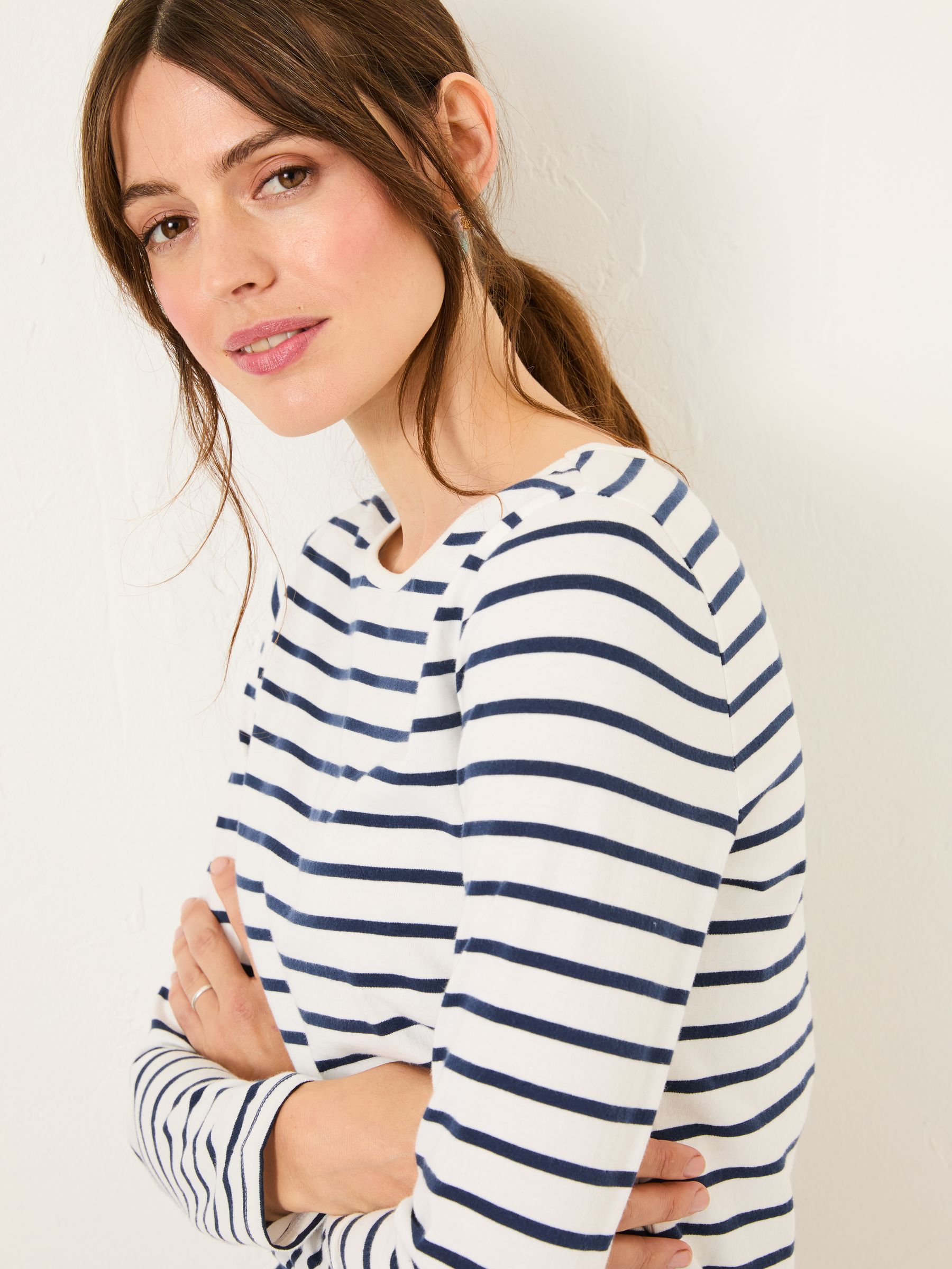 Ivory 100% Cotton Long Sleeve Summer Breton T-Shirt