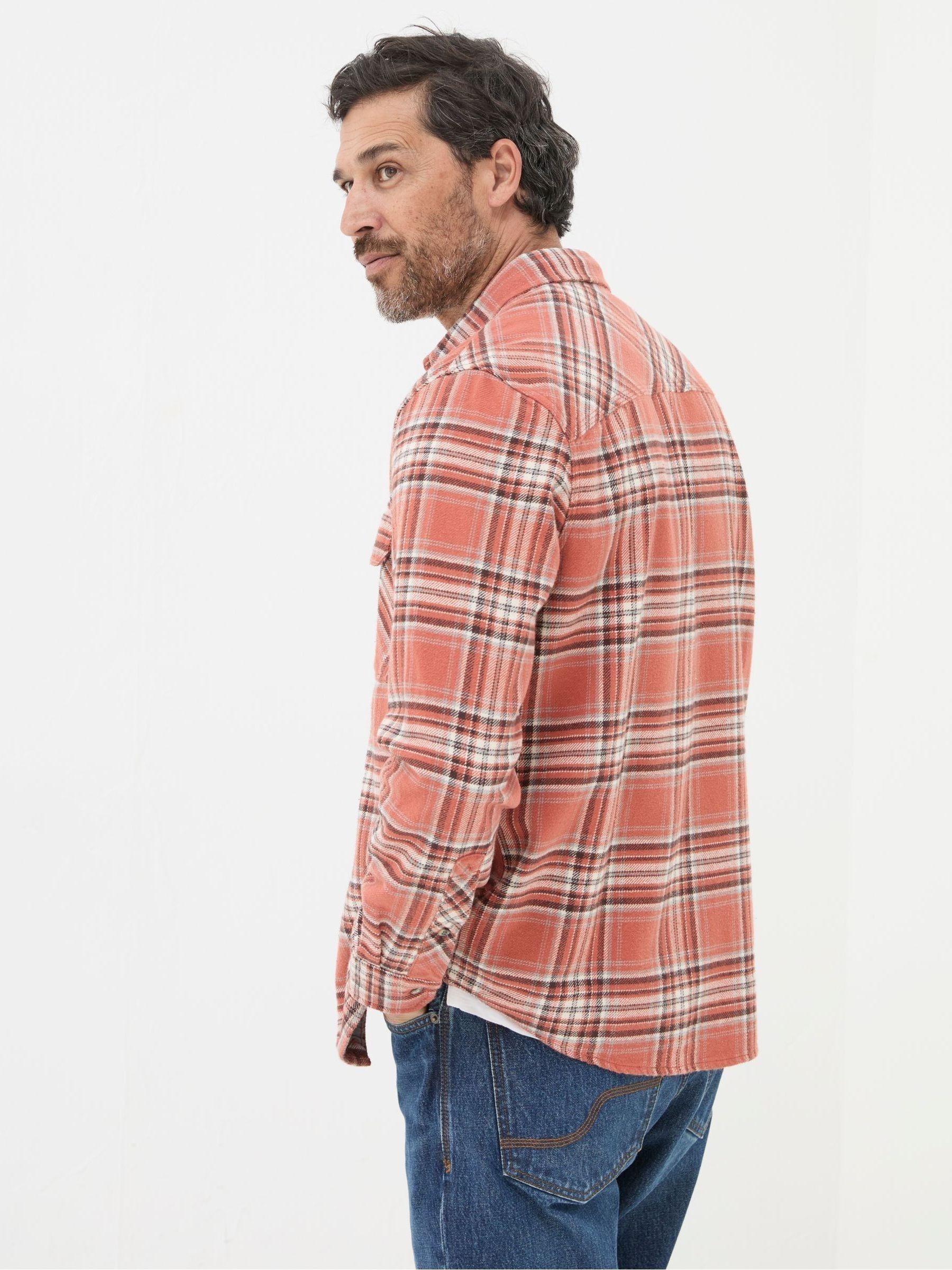 Whether you wear it on its own with jeans or layer it over a plain tee, our orange Long Sleeve Bardon Check Shirt is a style you can rely on. 100% cotton makes it soft and breathable, while the curved hem, twin chest pockets and adjustable pockets are functional features that up the style points.Soft, breathable cotton Two button-down chest pockets Adjustable button cuffs Curved hem