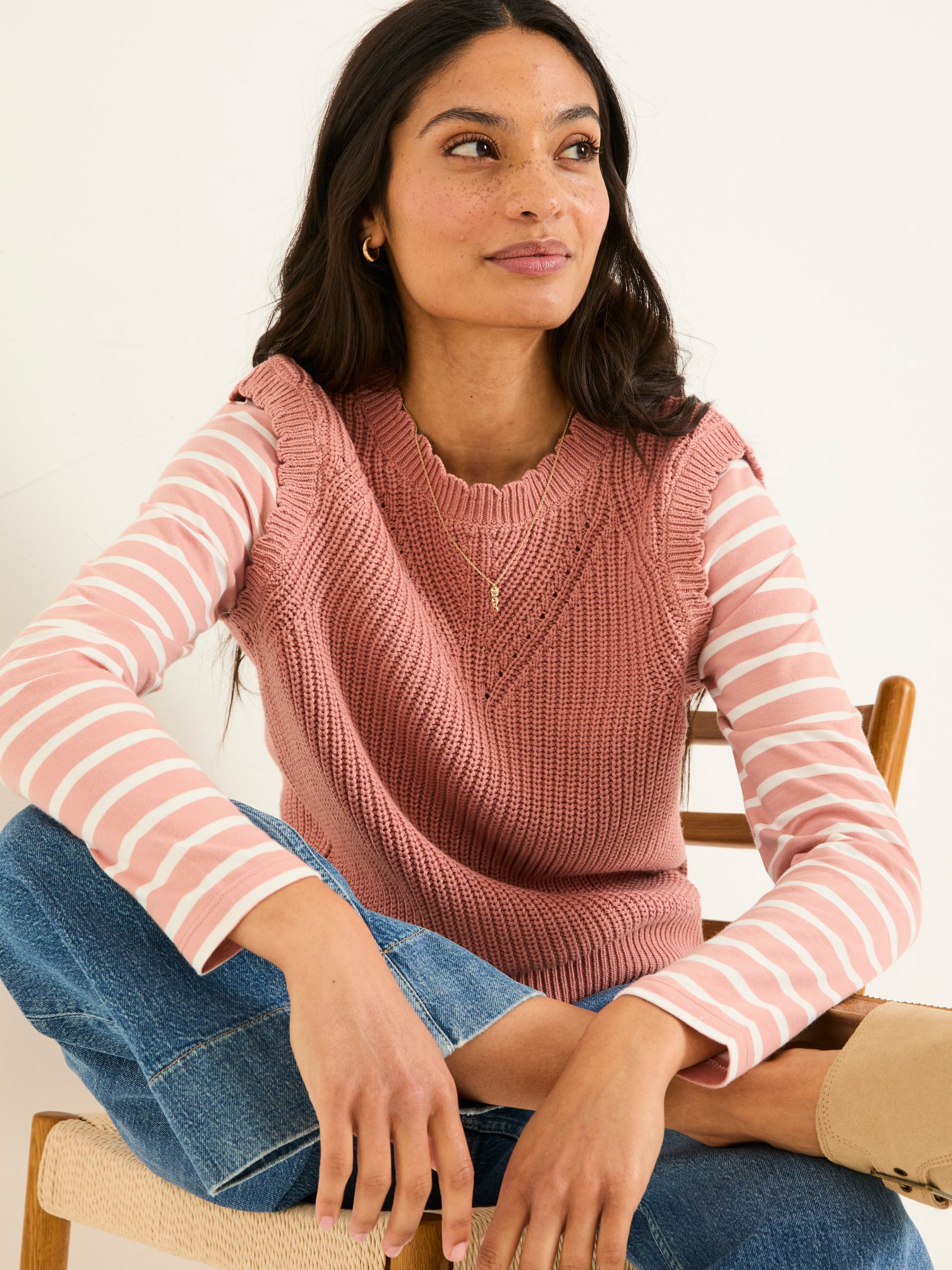 Elevate your knitwear collection with our Heidi 2in1 tank jersey - the perfect piece to style up or down no matter the occasion. Sunny weekend dog walk? Pair with your favourite denim jeans and some trainers for a casual, laid back look. Heading out for dinner? Dress up with a skirt and sandals for a colourful but comfy look. Made from soft fabrics, a flattering fit and a stylish knit vest with striped sleeves, our girl Heidi is the versatile piece your wardrobe is calling for. Model is 5'8''/173cm and wears UK size 18