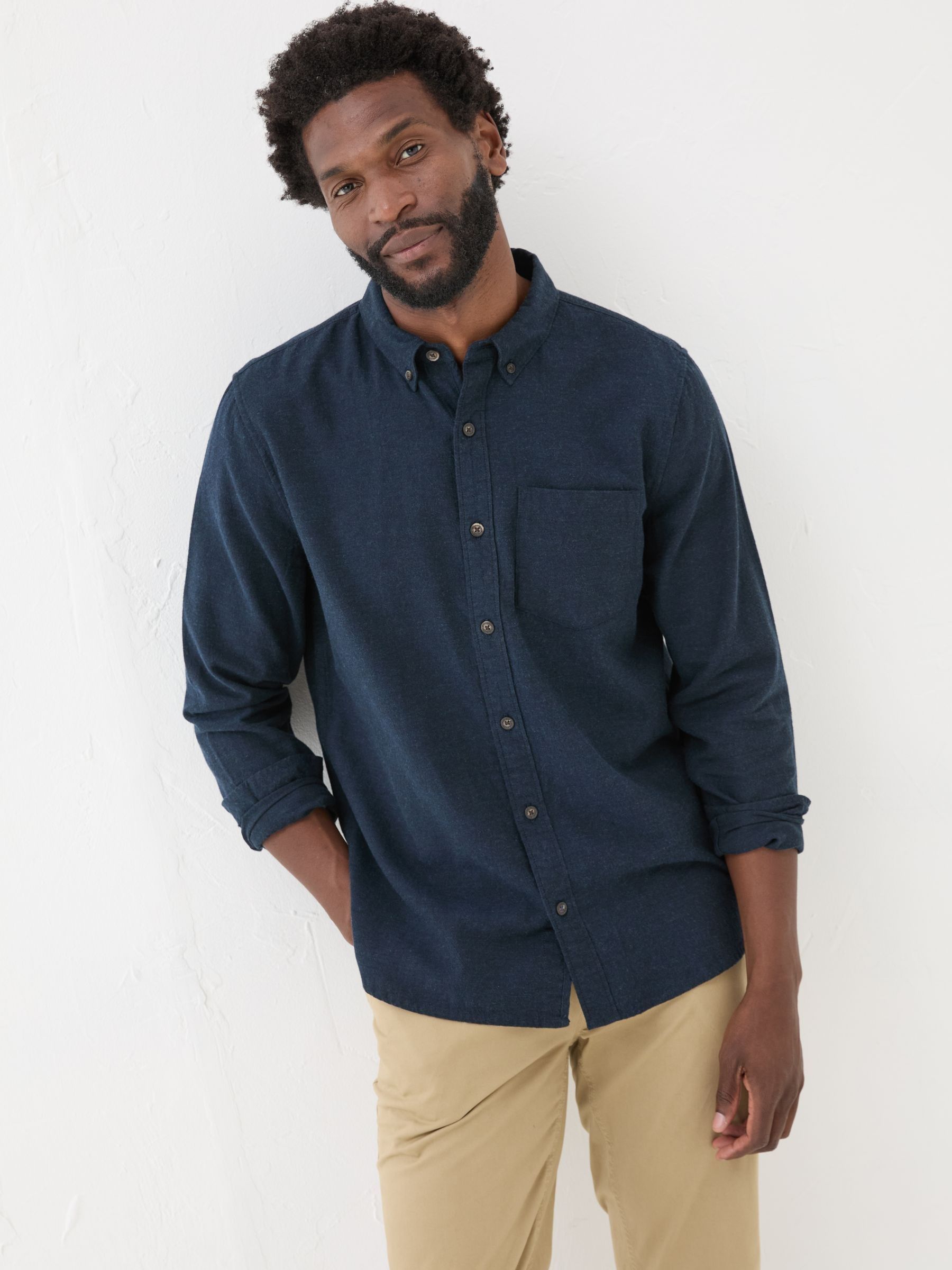 Blue Navy Long Sleeve Oxlow Plain 100% Cotton Shirt