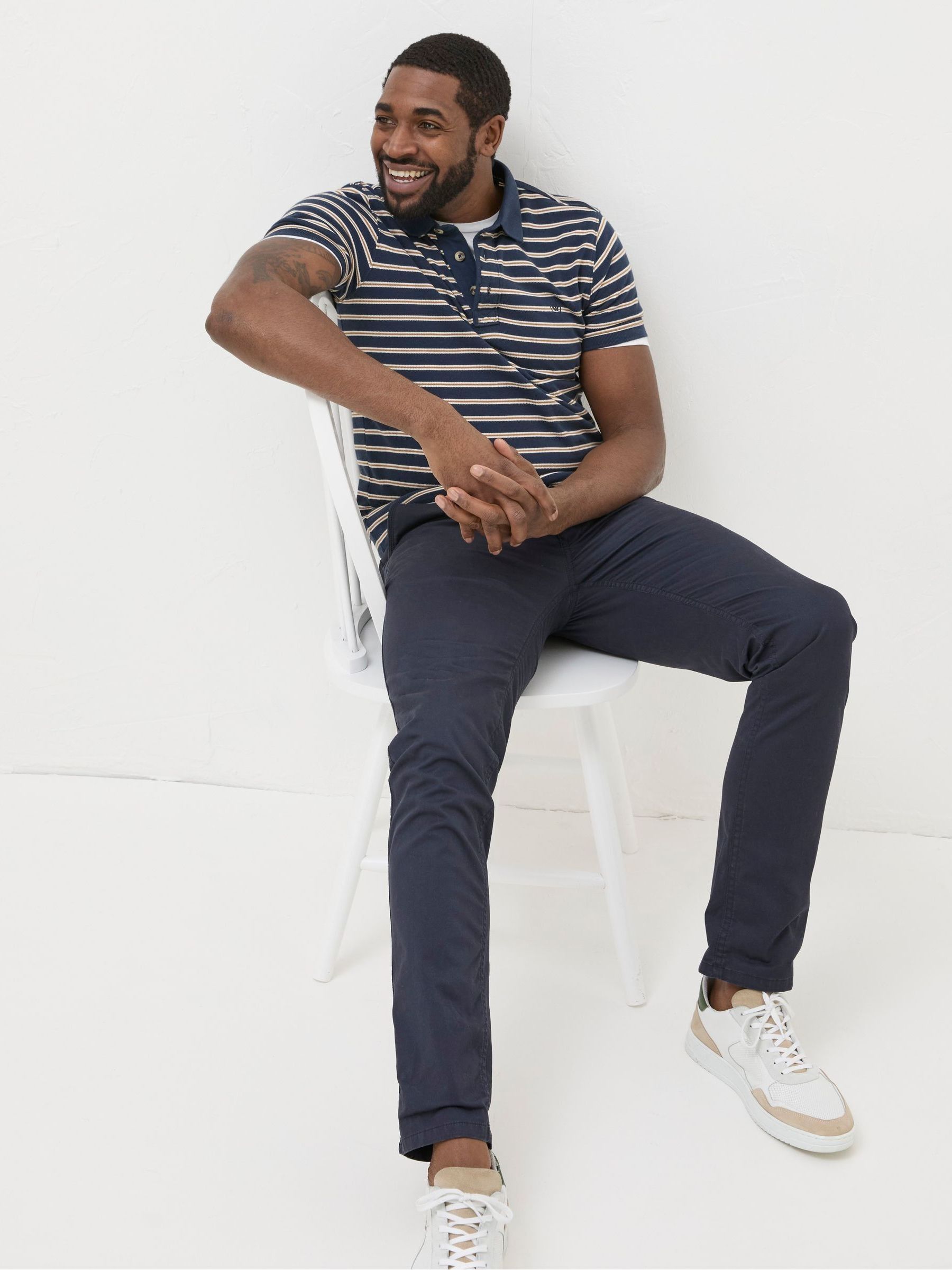 Made with lightweight yet hardwearing cotton with a touch of stretch for movement and comfort, these blue chinos are the perfect pair for casual days or dressing smart. In a comfortable slim fit, these simple trousers pack a big punch and boast plenty of pockets, belt loops and zip up fly. Just pair with your go-to graphic tee, lightweight knit or relaxed sweatshirt.
