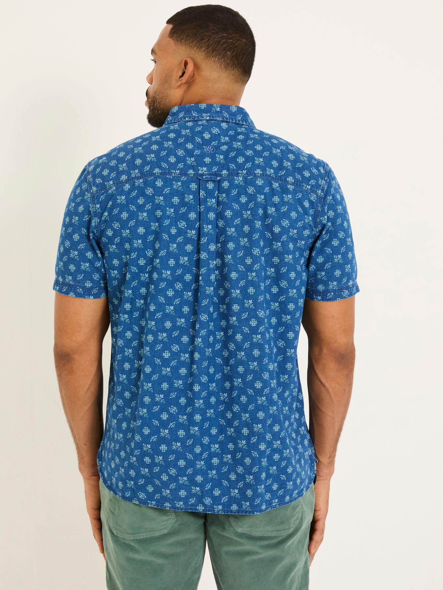 Our Geometric Print Blue Shirt is the perfect piece to dress up or down this summer. Pair with some chino trousers and loafers for dinner with friends or with chino or swim shorts and flip flops for days by the beach. It is a versatile and easy to wear shirt, featuring a regular collar and short sleeves. Crafted from 100% soft cotton, this shirt is lightweight and breathable and also available in tall sizes.