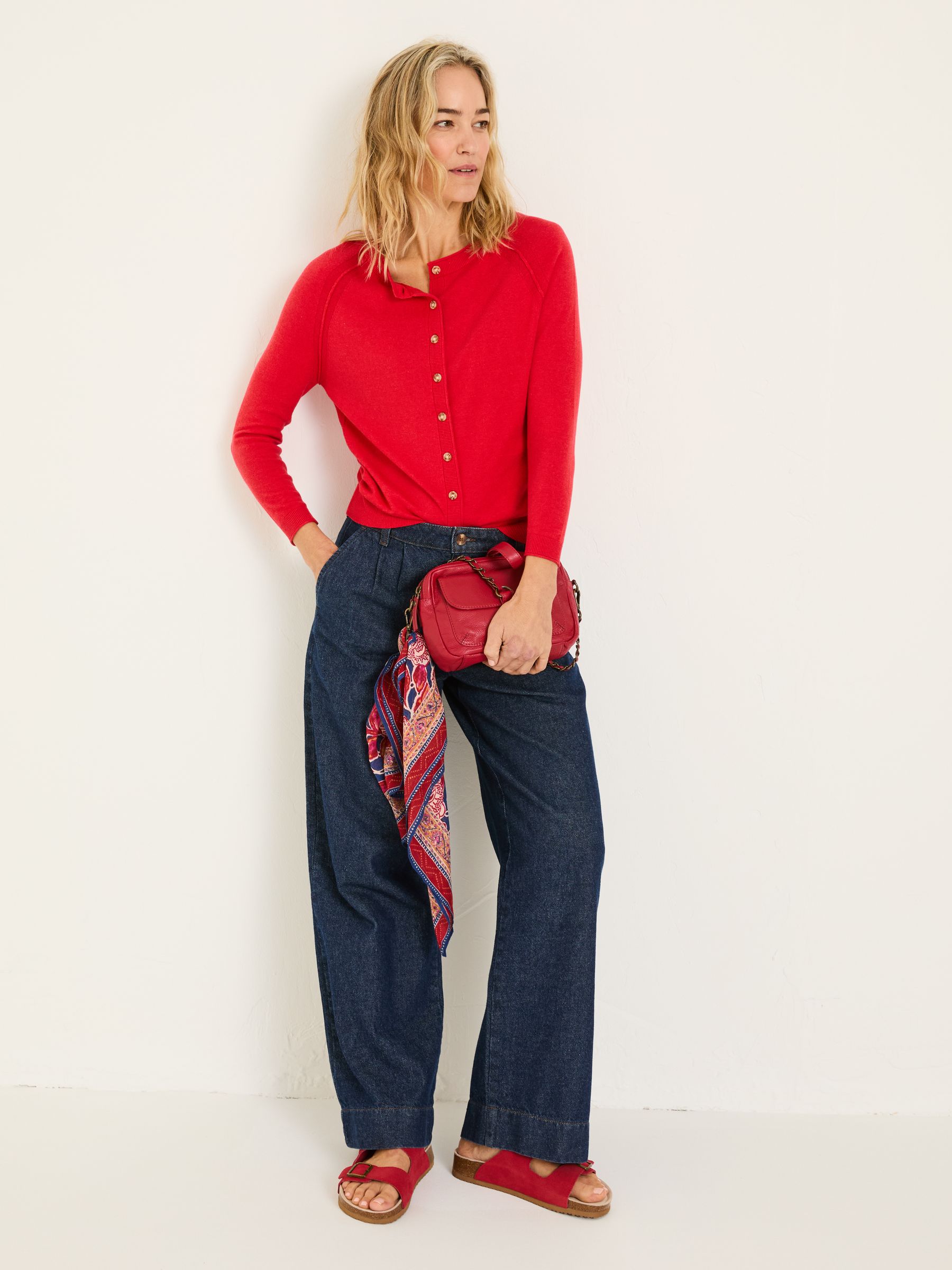 Our Rose cardigan is the light, versatile layer you didn't know you needed. Made from 100% cotton, it's supersoft and great for wearing on repeat. It can be styled open or closed and has three-quarter length raglan sleeves, ribbed finishes and a V-neckline. Model is 5ft 9''/175cm and wears UK size 8.