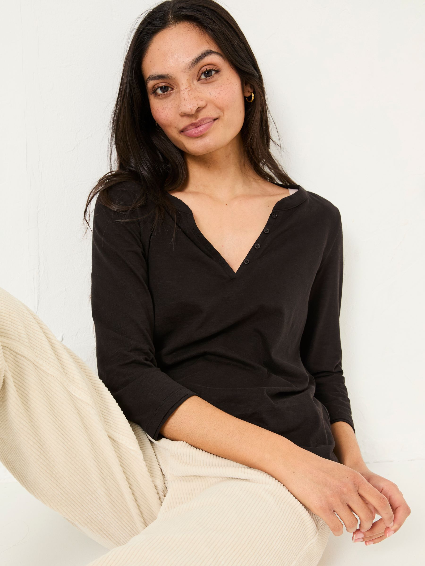 Keep it fresh and comfy with our Aster cotton T-Shirt. An everyday essential made for your wardrobe, crafted with cotton fabric for that soft and comfortable feel all day. The flattering V-neckline and 3/4 sleeves create a relaxed yet stylish feel. Pair with your favourite jeans for that laid-back look or a skirt for something a little more polished. Model is 5'9''/175cm and wears UK size 8