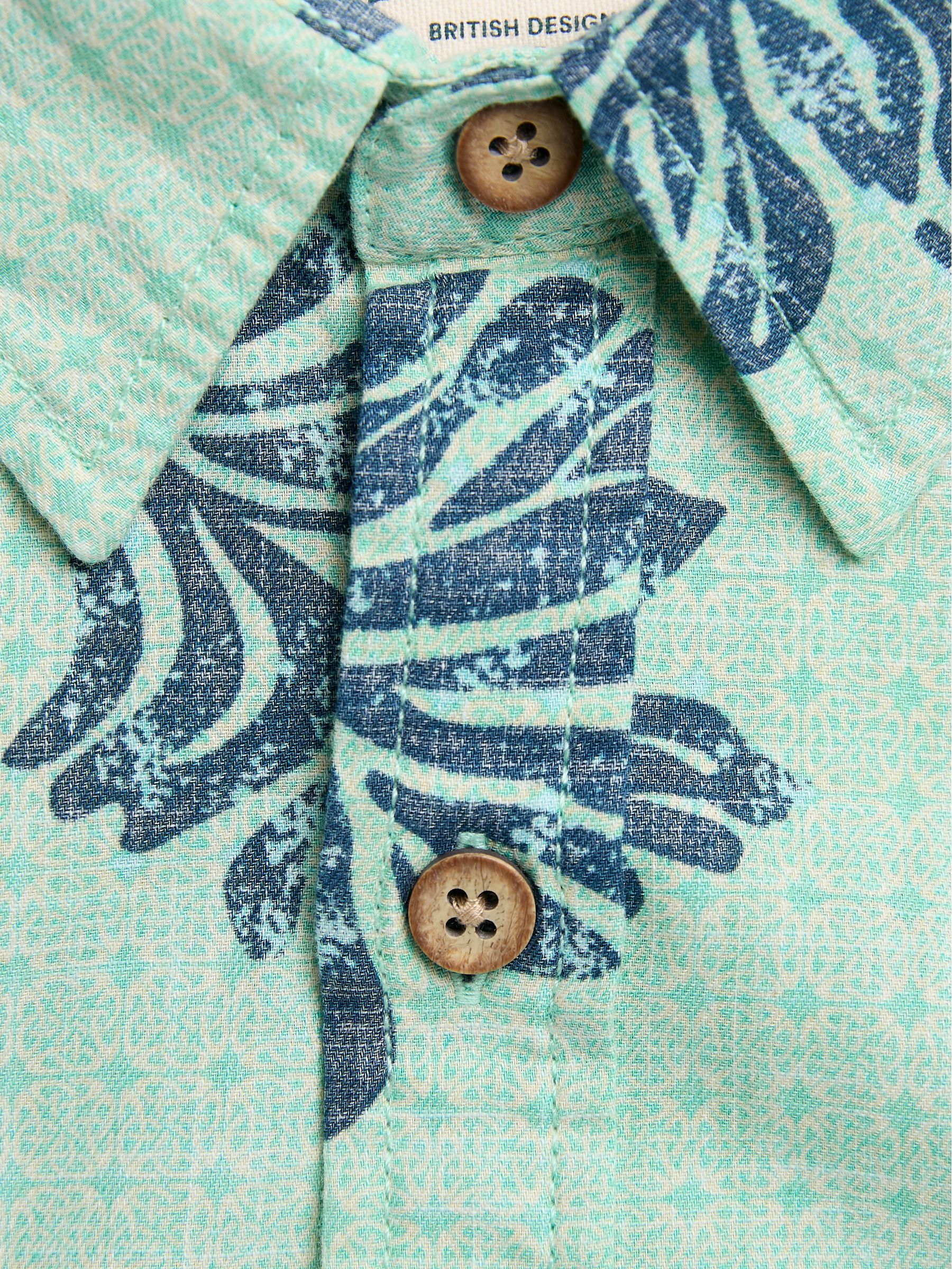 This leaf print shirt brings out all the warm-weather vibes. Complete with short sleeves and a single pocket on the chest, it looks equally good buttoned up or worn open over a graphic T-Shirt. Made from soft cotton Chest pocket Curved hem Model is 6ft 2''/188cm and wears UK size M Model is 6'1''/185cm and wears UK size M